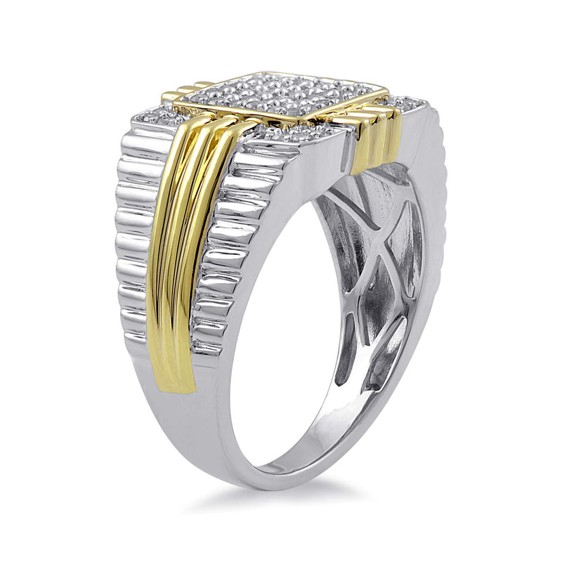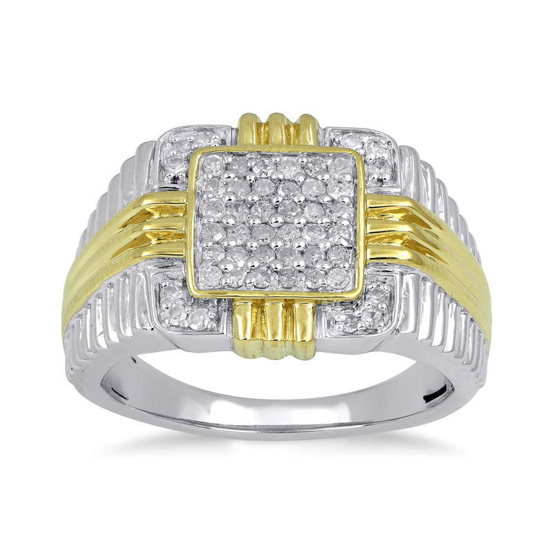 • 14K Yellow Gold over Sterling Silver 1/2 Cttw Natural White Diamonds Men's Ring
