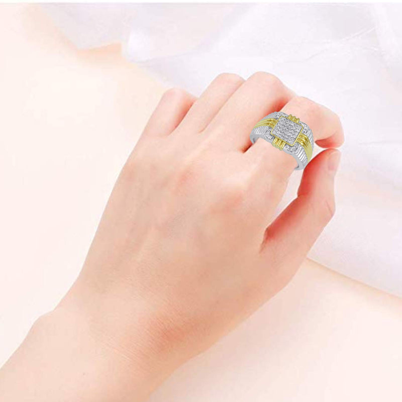 • Load image into Gallery viewer, Jewelili Men's Ring with Natural White Diamonds in 14K Yellow Gold over Sterling Silver 1/2 CTTW View 1
