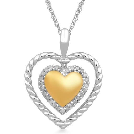 Jewelili 14K Yellow Gold Over Sterling Silver With 1/10 CTTW Natural White Diamond Heart Shape Pendant Necklace