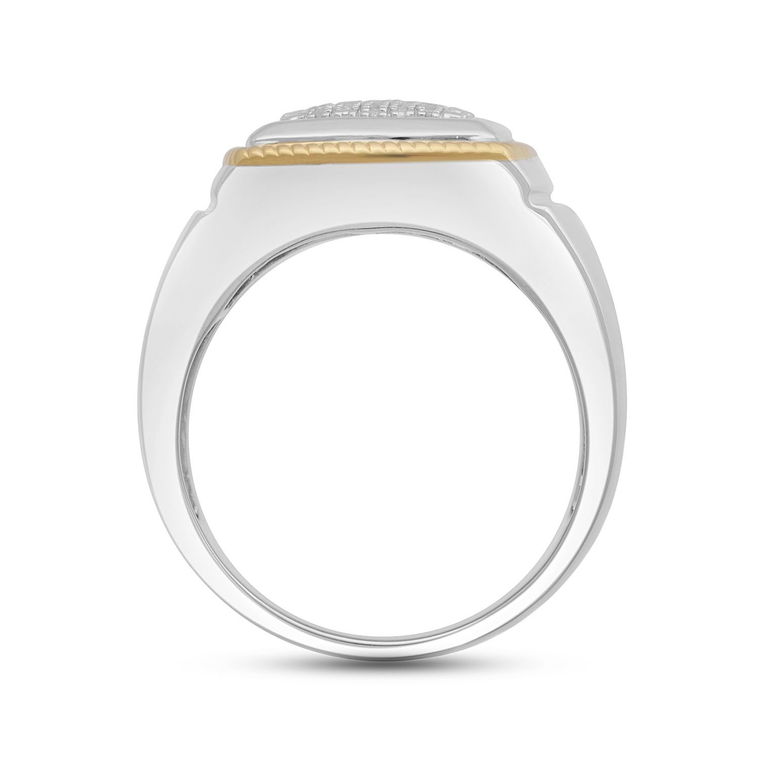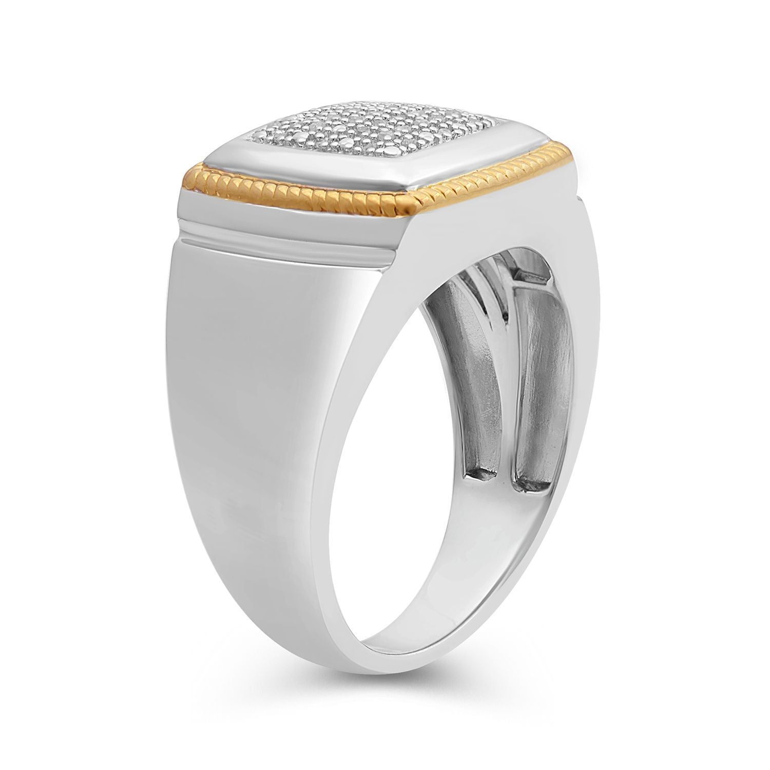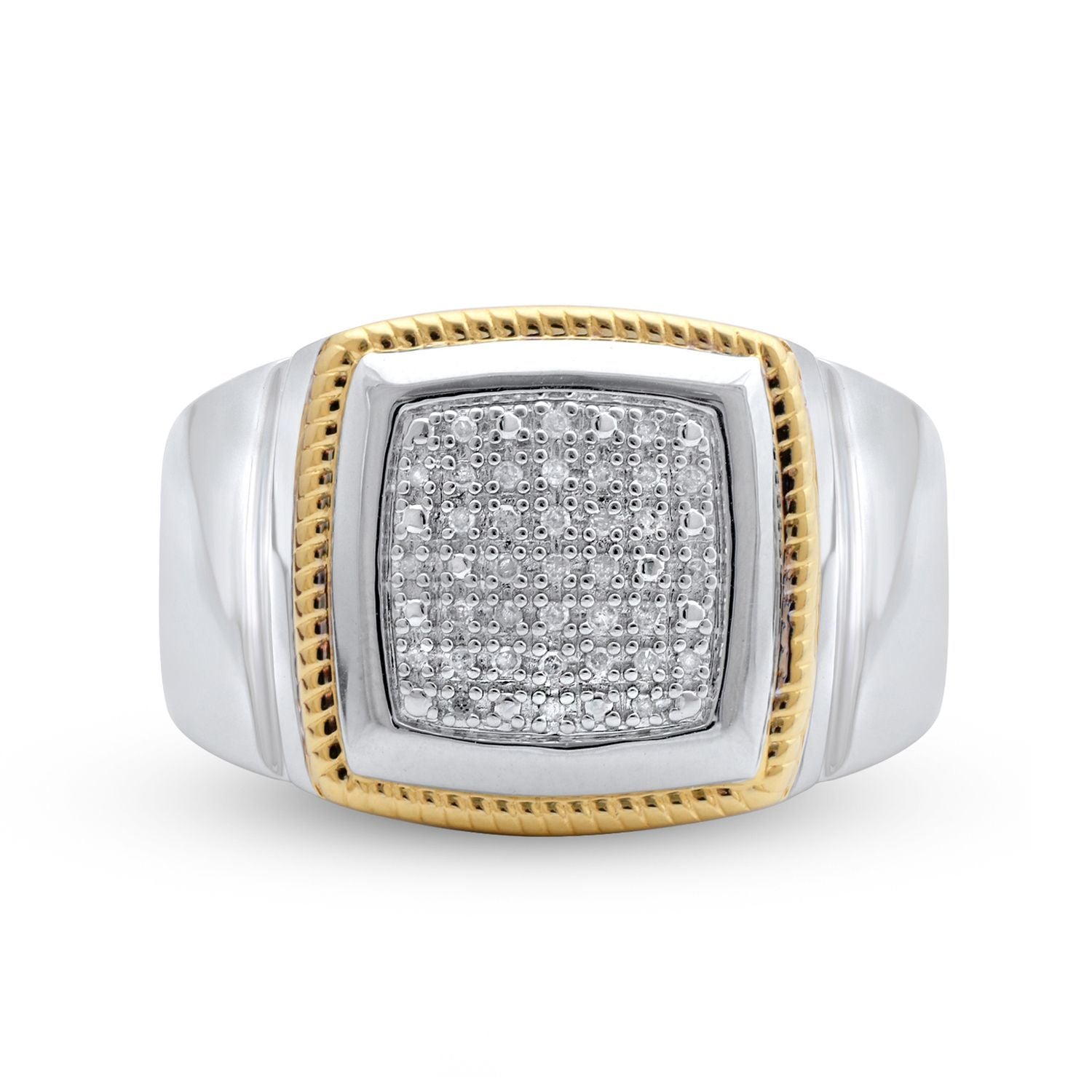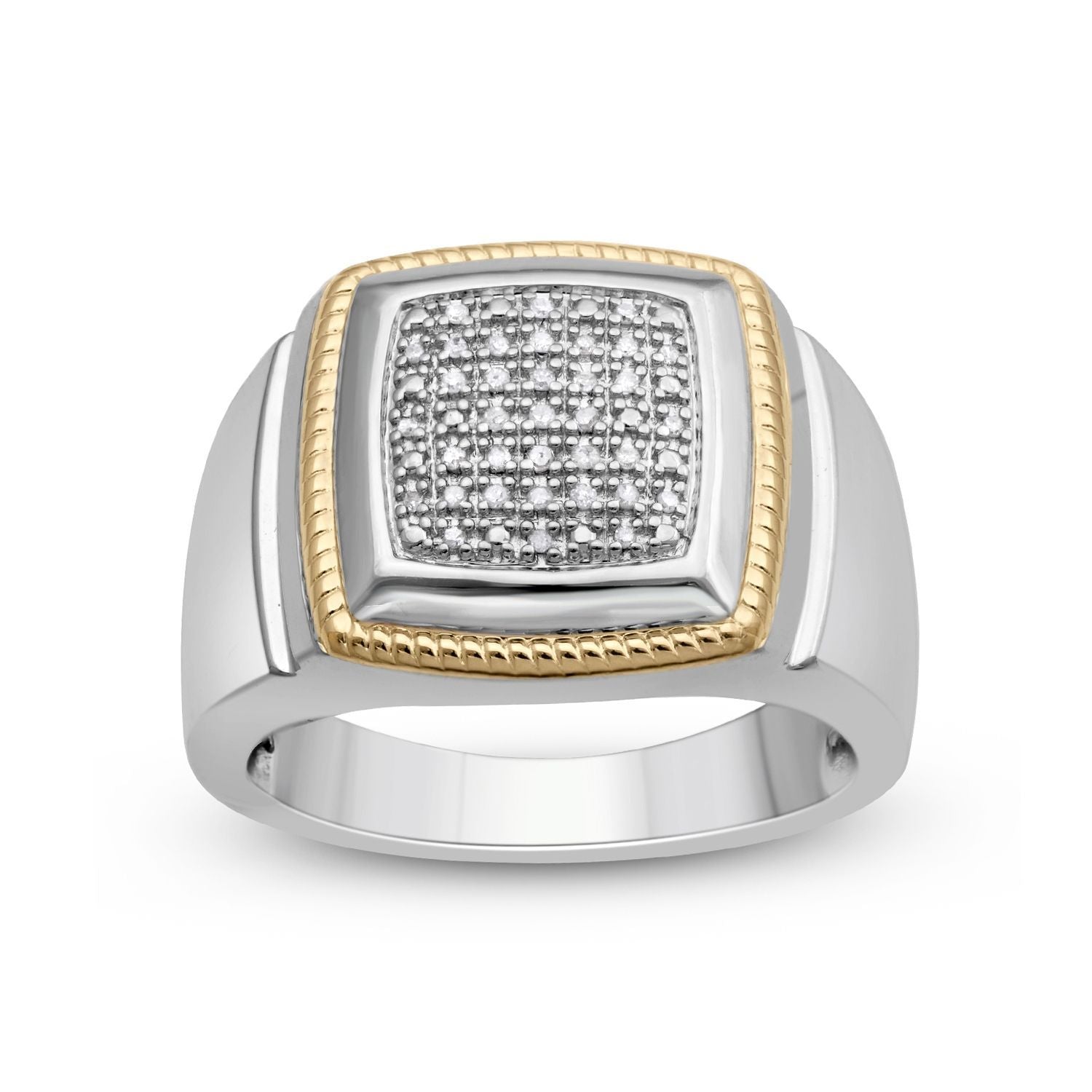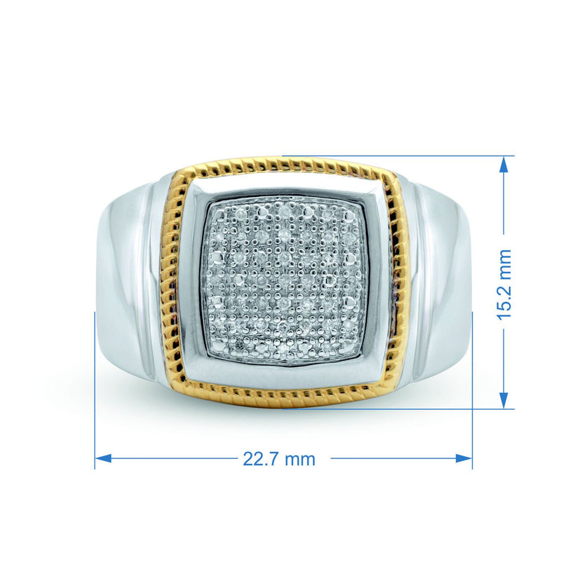 Jewelili 14K Yellow Gold Over Sterling Silver With 1/10 CTTW Natural White Round Diamonds Men's Ring