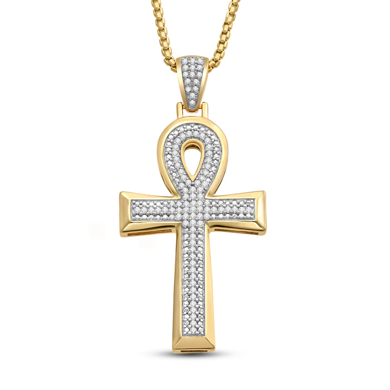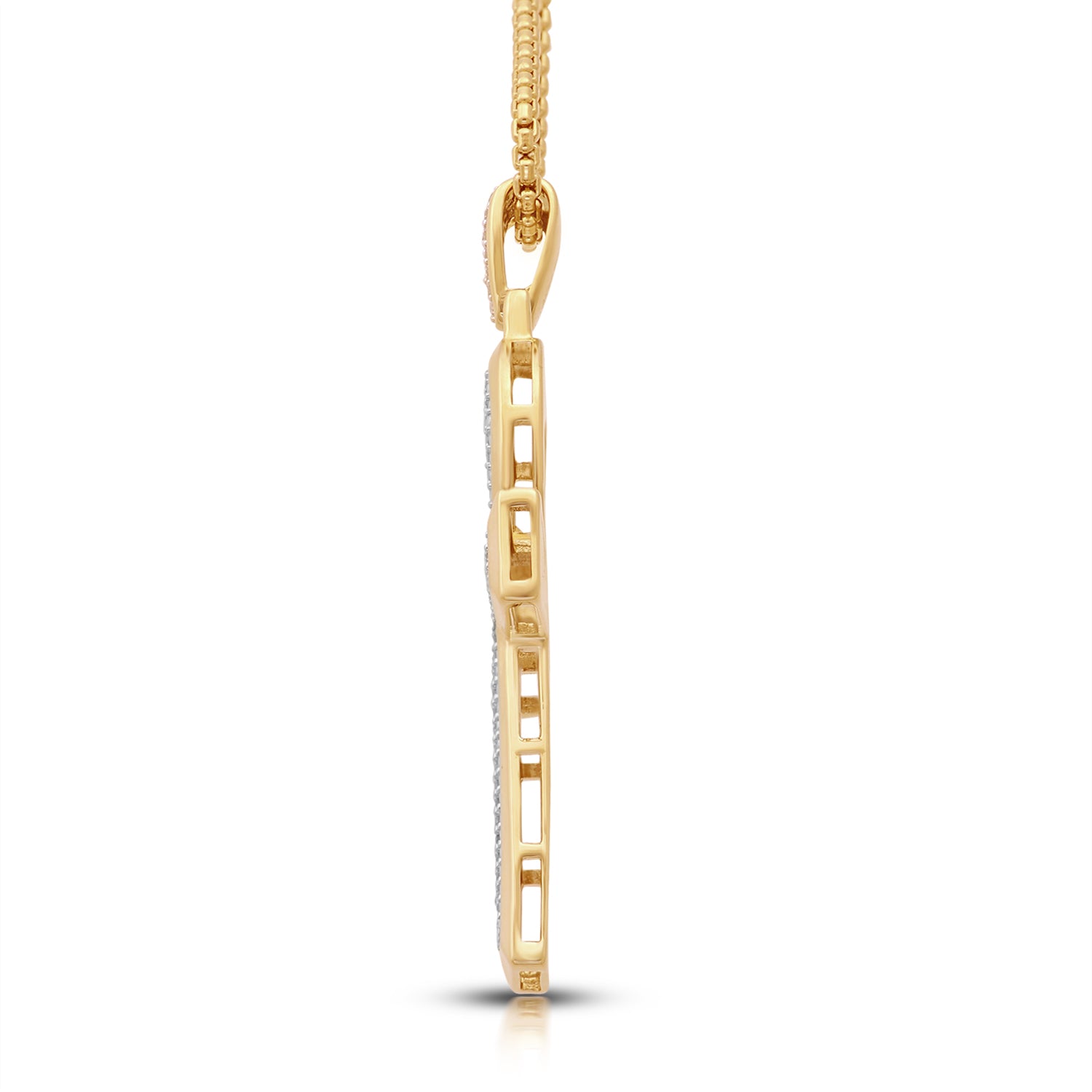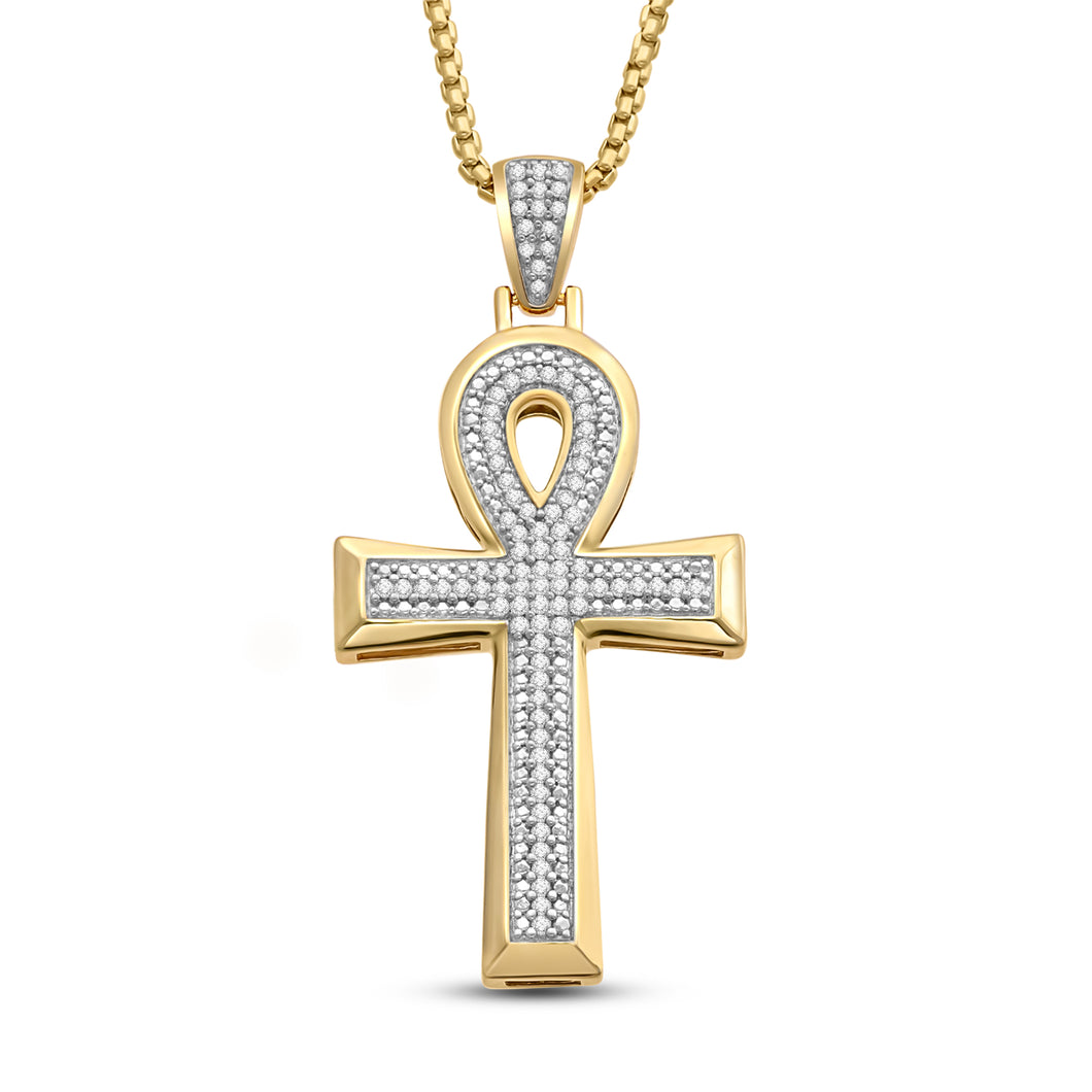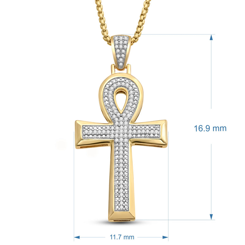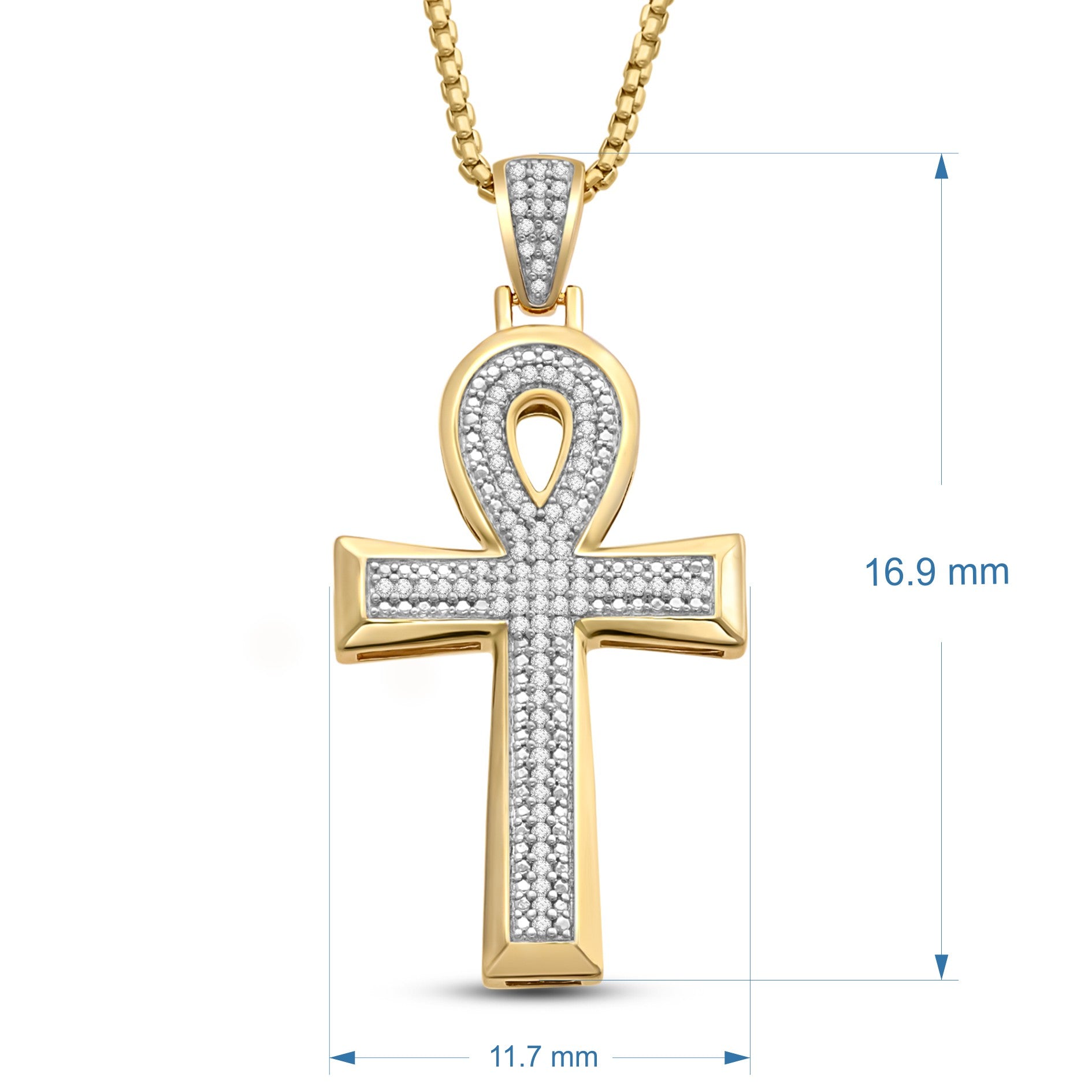 Jewelili 14K Yellow Gold over Sterling Silver With 1/2 CTTW Natural White Round Diamonds Cross Men's Pendant Necklace