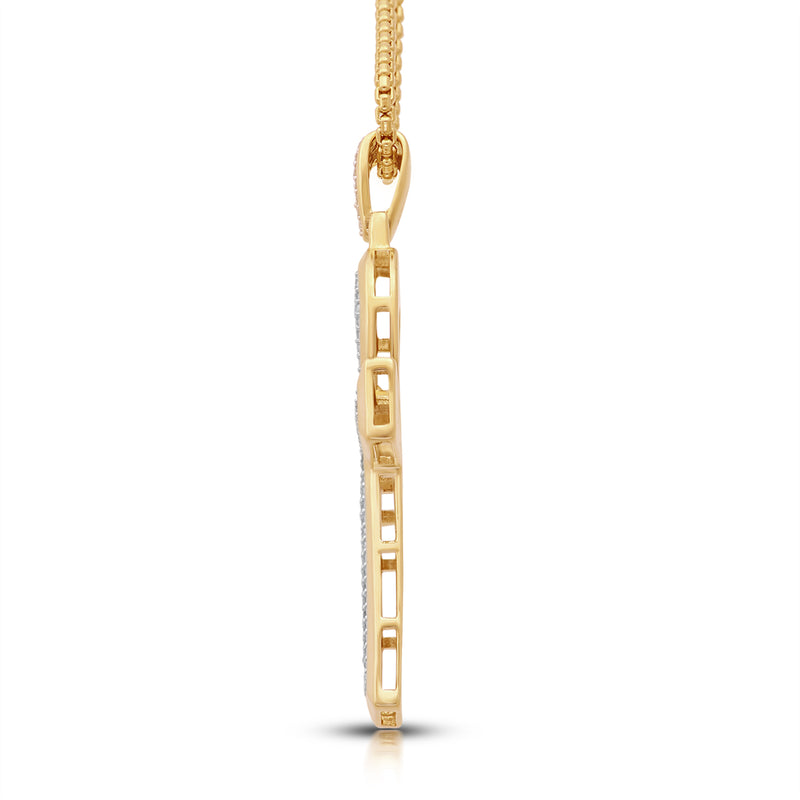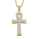 • Load image into Gallery viewer, Jewelili 14K Yellow Gold over Sterling Silver With 1/2 CTTW Natural White Round Diamonds Cross Men's Pendant Necklace