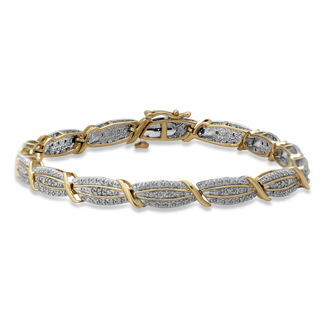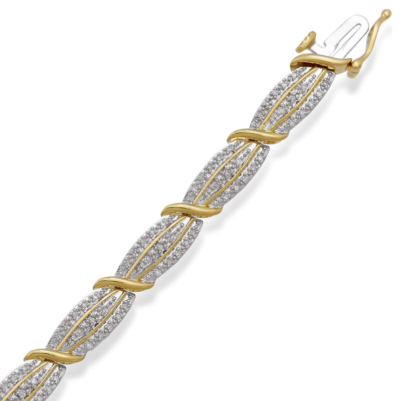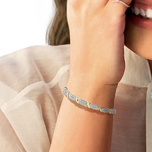 • 14K Yellow Gold over Sterling Silver With 1/4 Cttw Diamond Bracelet, 7.25"