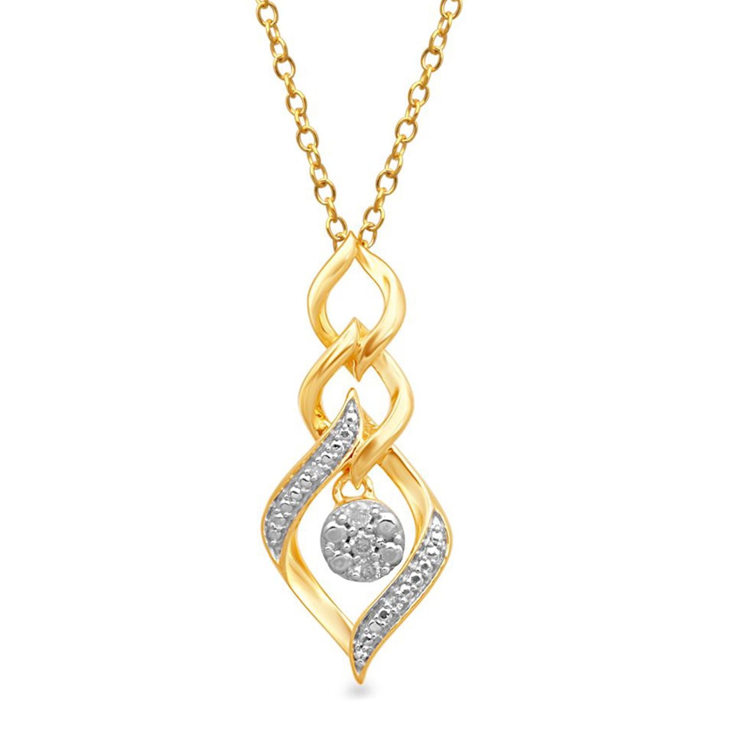 Jewelili 14K Yellow Gold over Sterling Silver with 1/4 CTTW Diamonds Pendant and Dangle Earrings Set