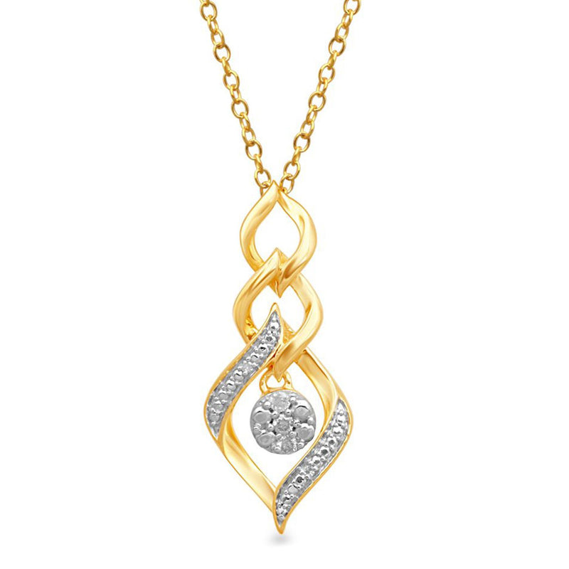 • Load image into Gallery viewer, Jewelili Pendant and Dangle Earrings Set with Diamonds in 14K Yellow Gold over Sterling Silver 1/4 CTTW View 1