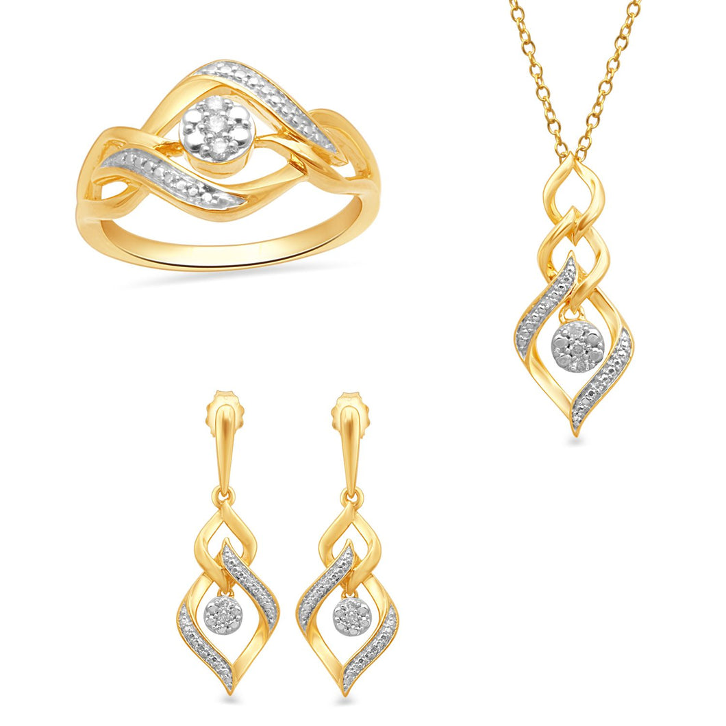 • Pendant and Dangle Earrings Set in Yellow Gold Plated Sterling Silver with 1/8 Cttw Natural White Round Diamond