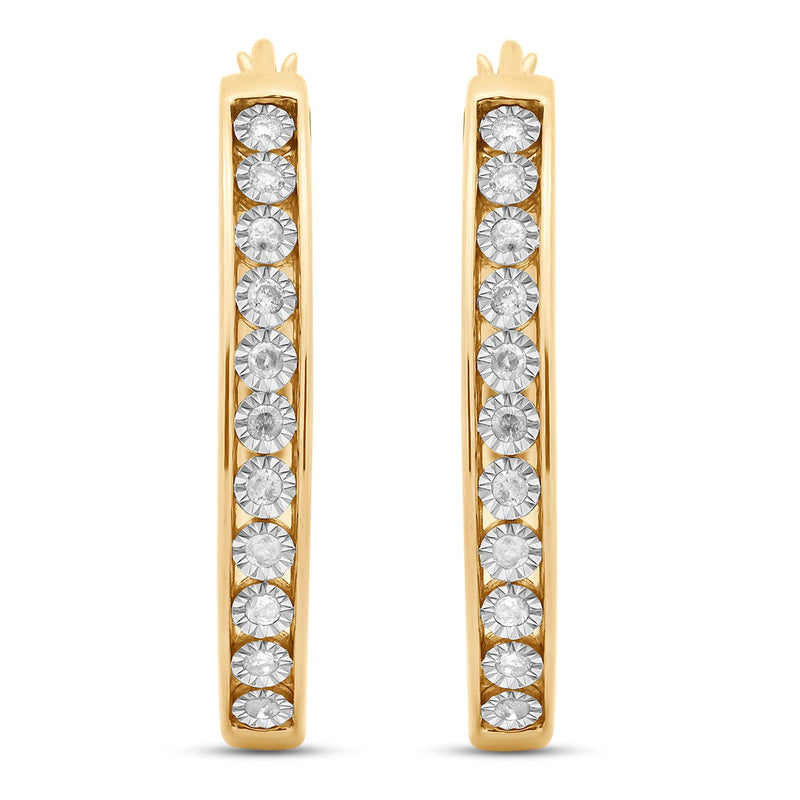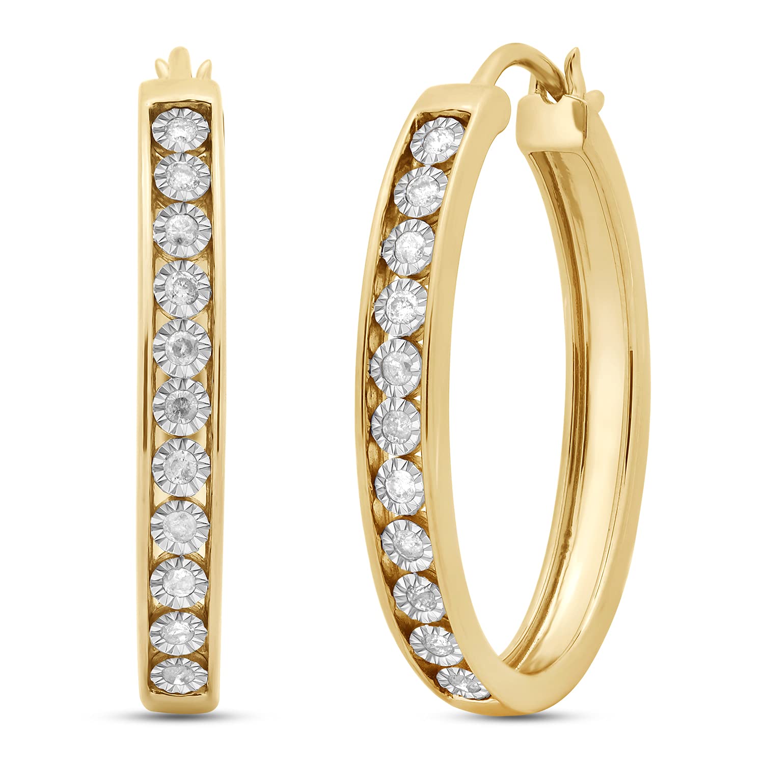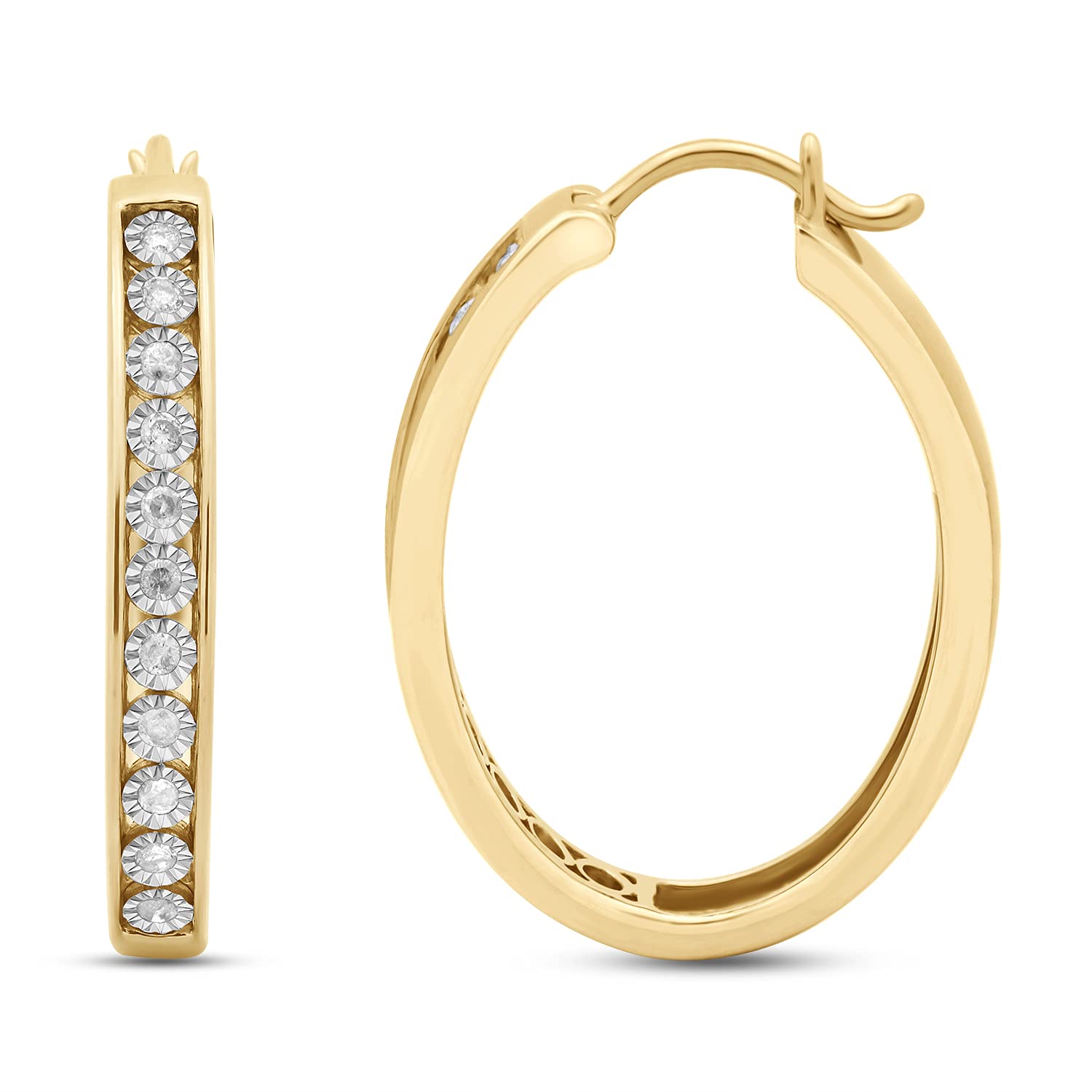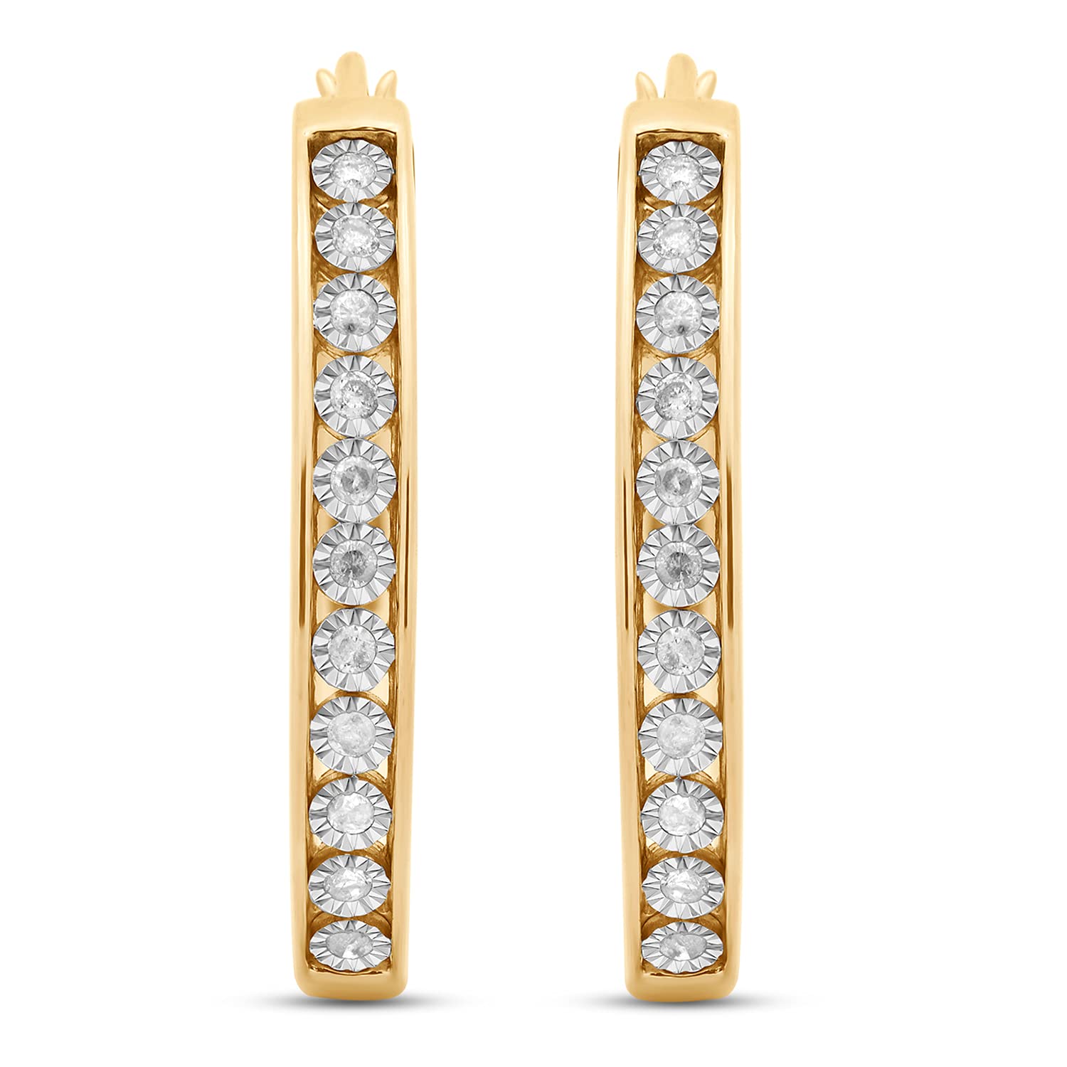 • 14K Yellow Gold over Sterling Silver With 1/4 Cttw Natural White Round Diamonds Hoop Earrings