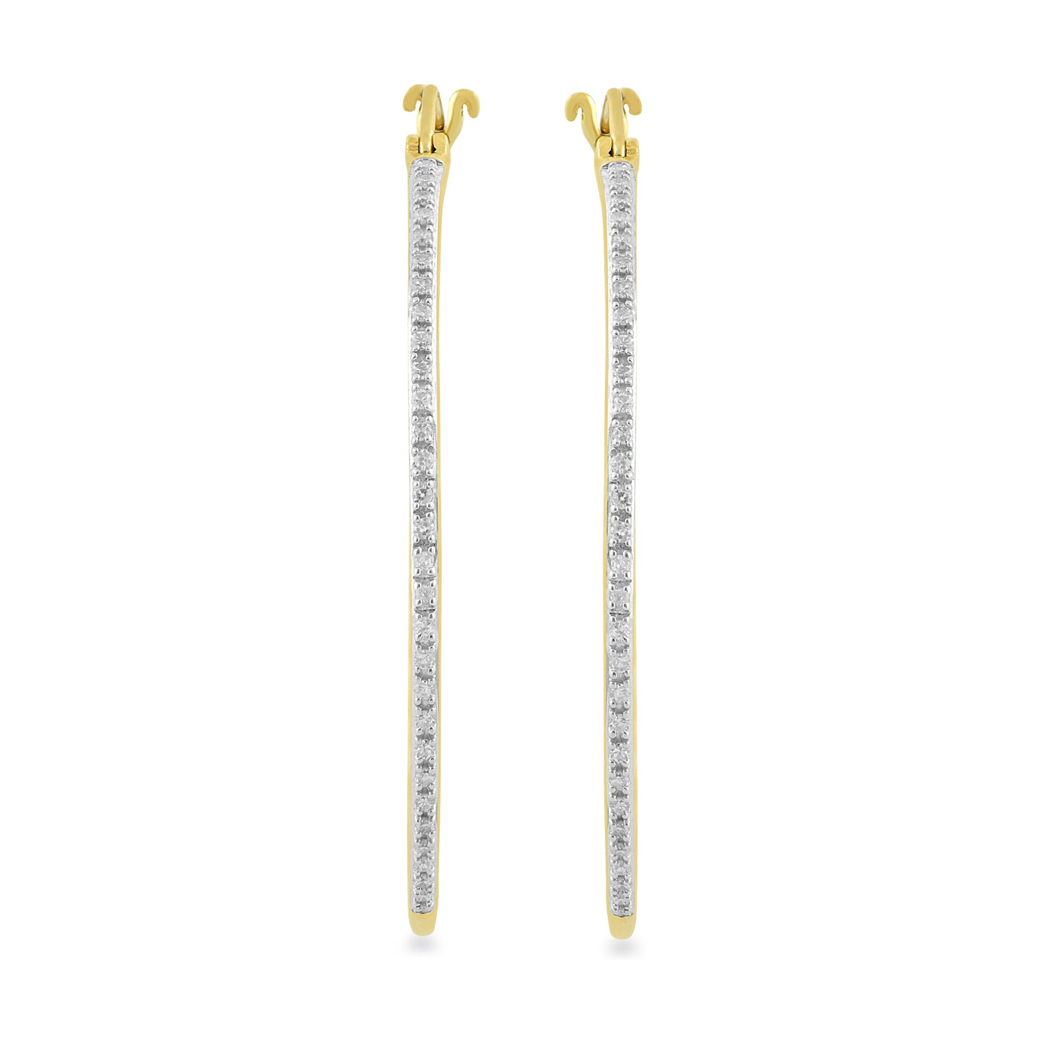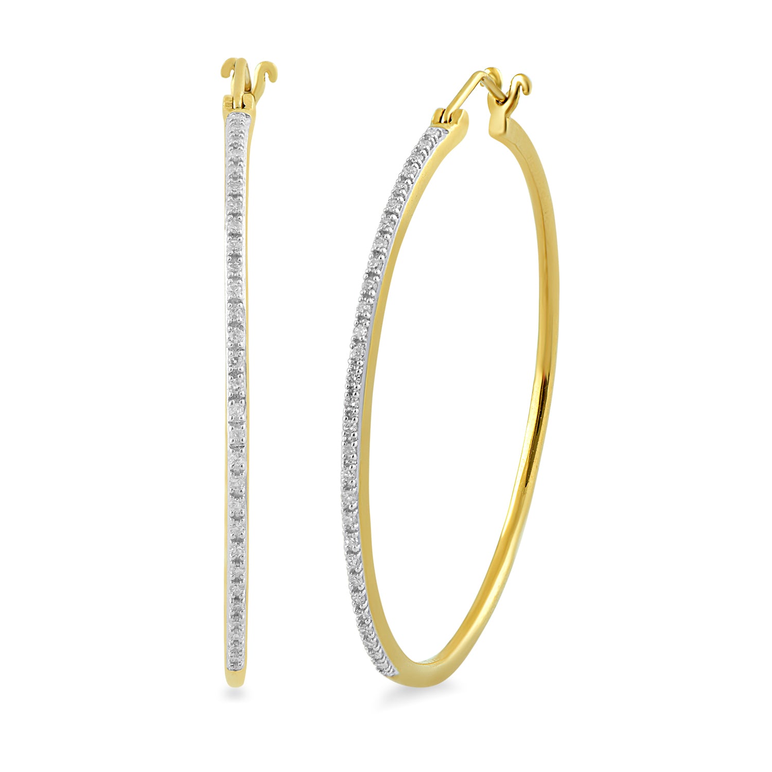 • 14K Yellow gold Over Sterling Silver 1/4 Cttw Round Natural Diamond Hoop Earrings