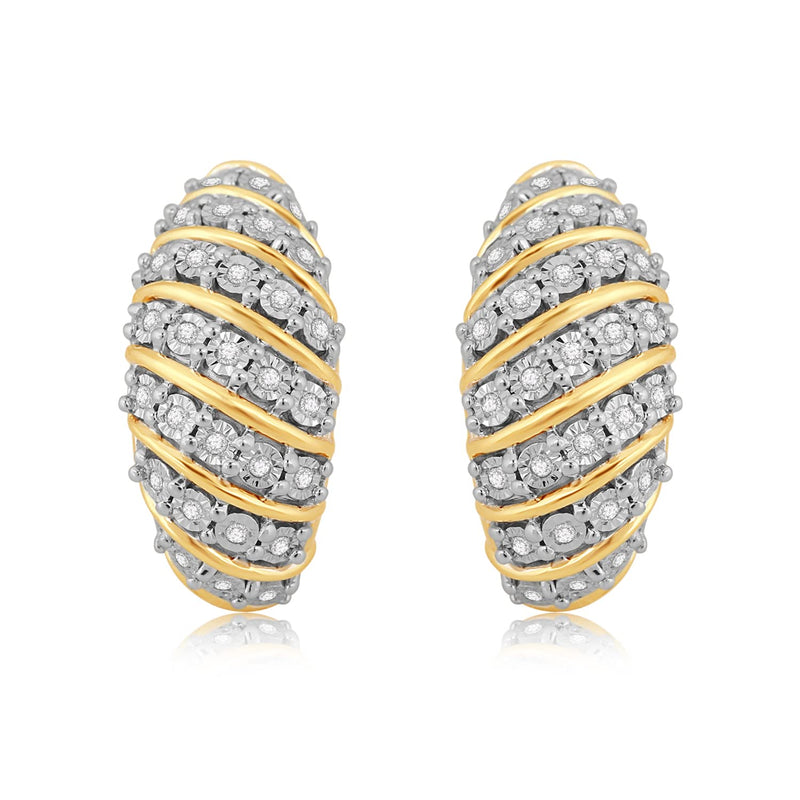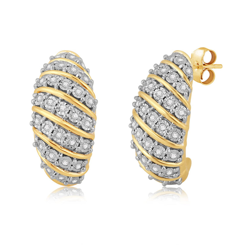 • 14K Yellow Gold Over Sterling Silver With 1/4 Cttw Round Natural White Diamonds Hoop Earrings
