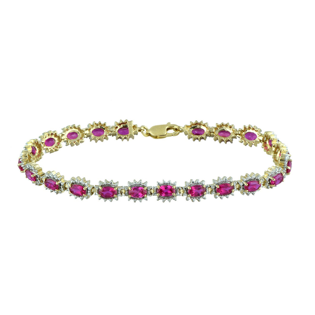 • 14K Yellow Gold Over Sterling Silver with Created Ruby and Round Diamonds Tennis Bracelet
