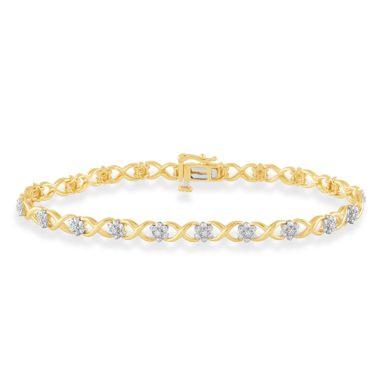 Jewelili 14K Yellow Gold Over Sterling Silver With Natural Diamonds Fashion Bracelet, 7.25"