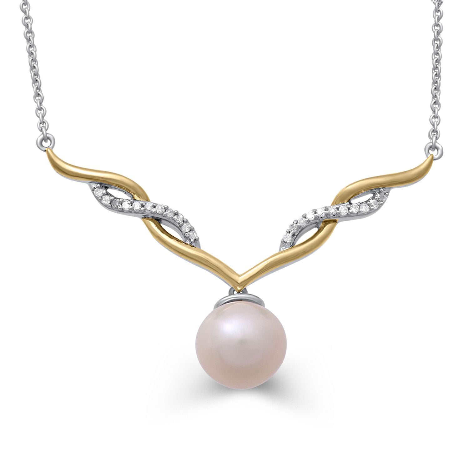 • 14K Yellow Gold over Sterling Silver With Pearl and Natural White Diamond Pendant Necklace
