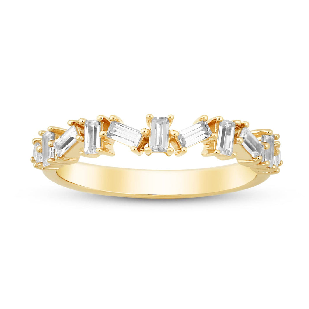 Jewelili 14K Yellow Gold With 1/2 CTTW Natural White Diamond Ring