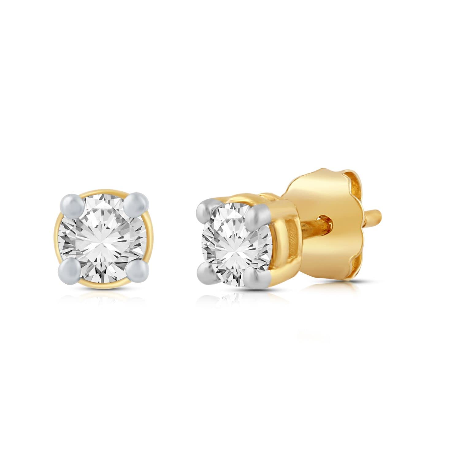 Details: 14K Yellow Gold With 1/5 CTTW Diamond Solitaire Stud Earrings