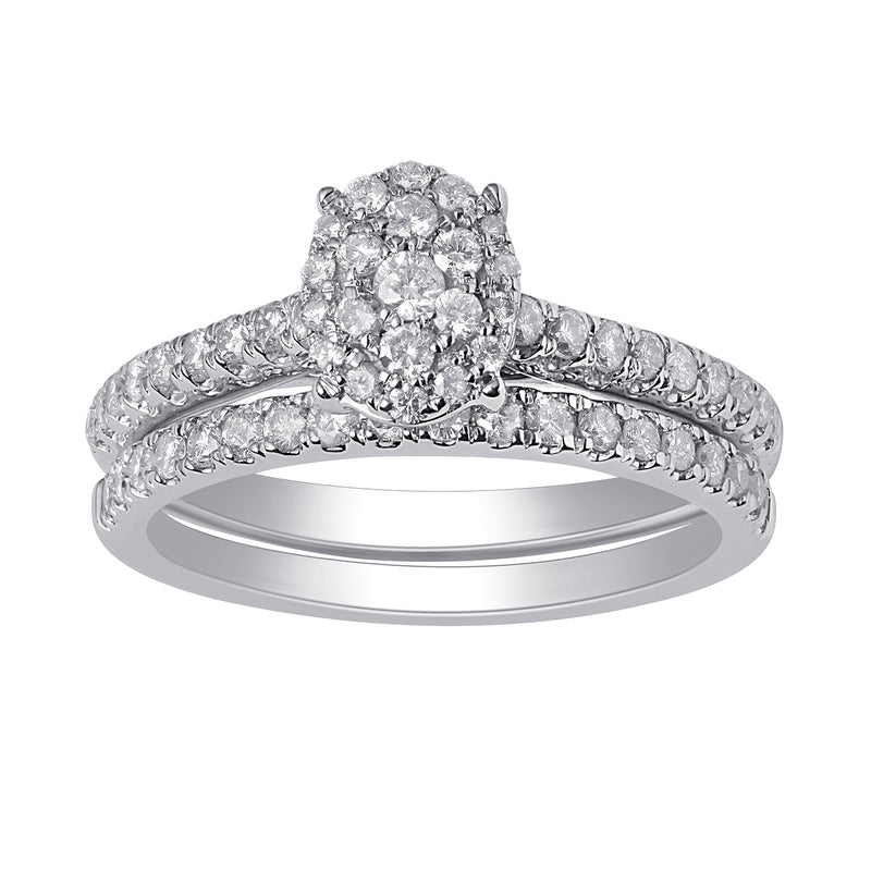 • Load image into Gallery viewer, Jewelili Bridal Set with Round Natural White Diamonds in 14K White Gold 1/2 CTTW View 1