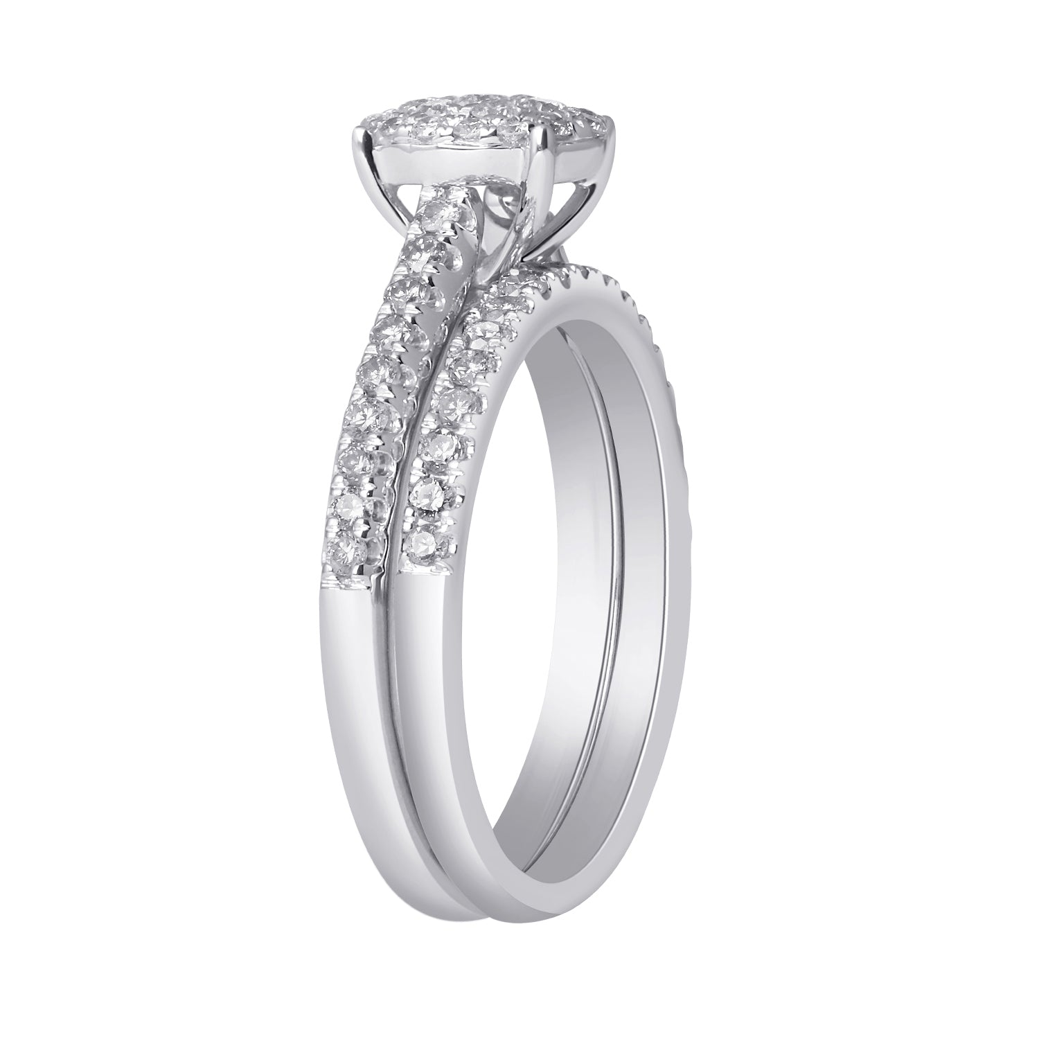 Jewelili 14K White Gold 1/2 CTTW Round Natural White Diamonds Bridal Set