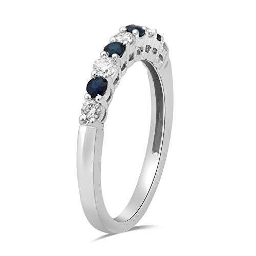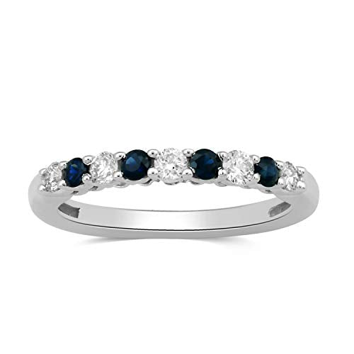 Jewelili 14K White Gold With 1/3CTTW Natural White Diamonds and Blue Sapphire Band Ring