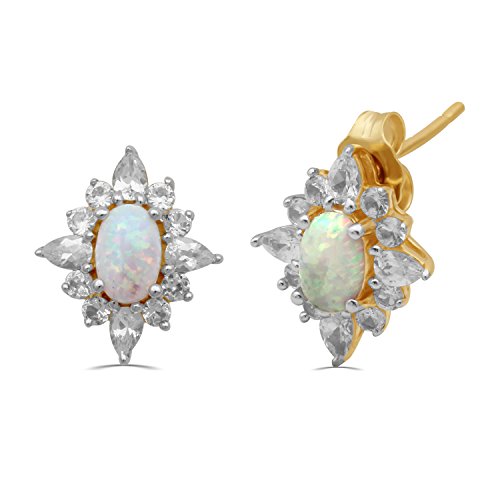 Details: 14K Yellow Gold Over Sterling Silver with Created Opal and Created White Sapphire Stud Earrings