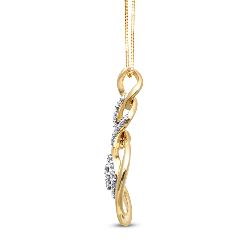 Details: 14K Yellow Gold Over Sterling Silver 1/4cttw Round White Diamond Entangled Pendant Necklace, 18" Box Chain