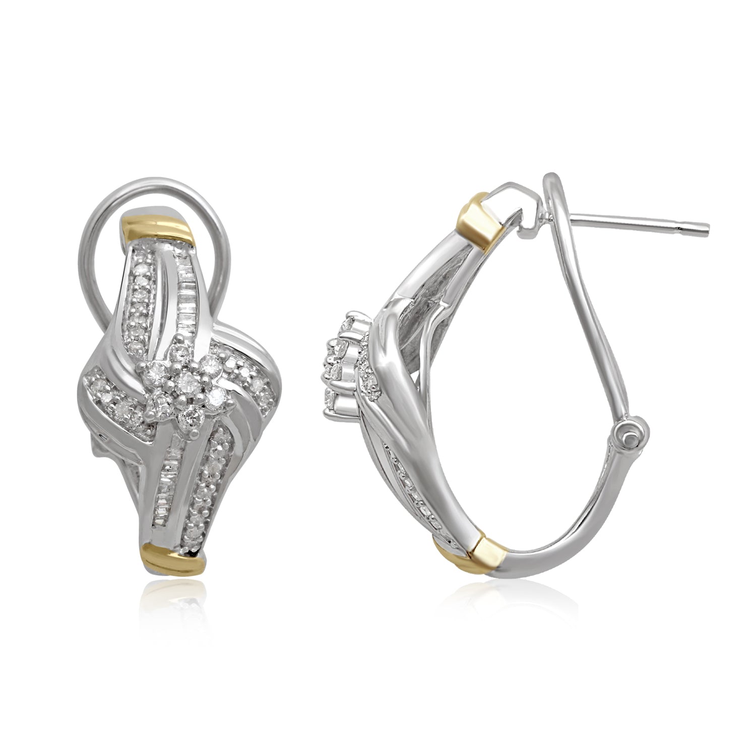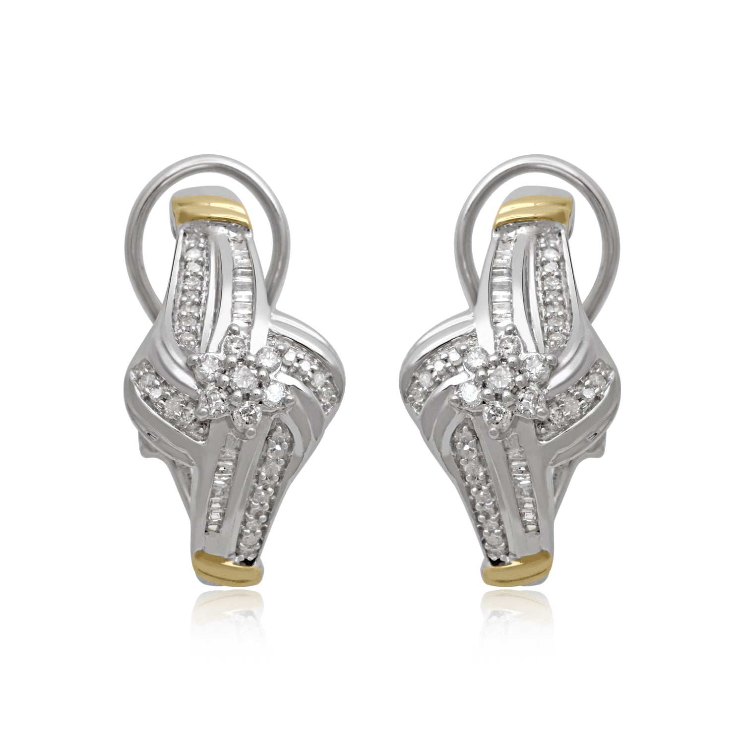 Details: 18K Yellow Gold Plated Sterling Silver 1/2 Cttw  Natural White round and baguette Shape Center Cluster Bypass Earring