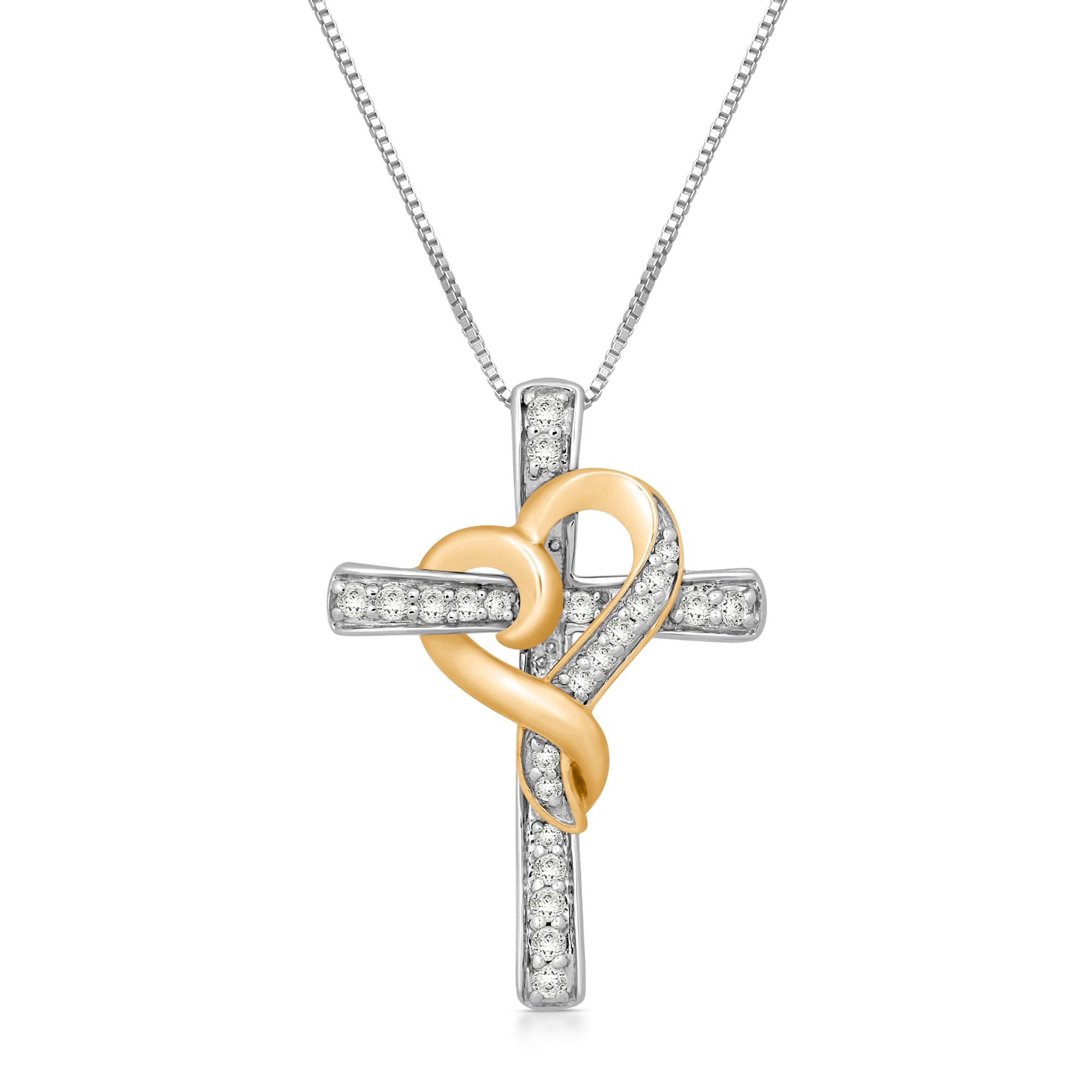 Details: 18K Rose Gold Over Sterling Silver With 1/4 Cttw Natural White Diamond Heart with Cross Pendant Necklace