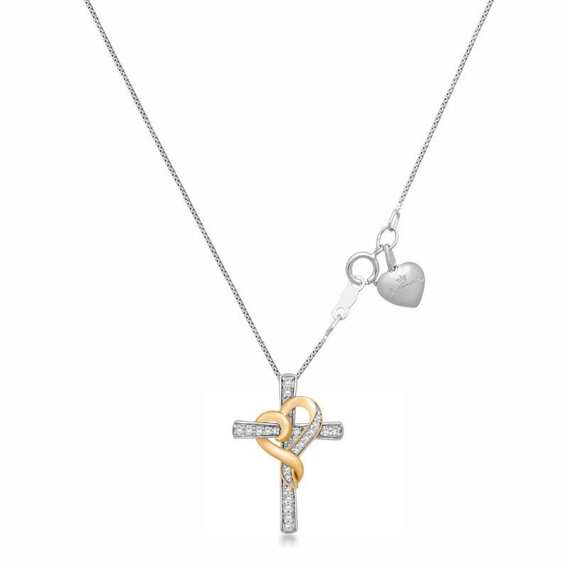 • 18K Rose Gold Over Sterling Silver With 1/4 Cttw Natural White Diamond Heart with Cross Pendant Necklace.