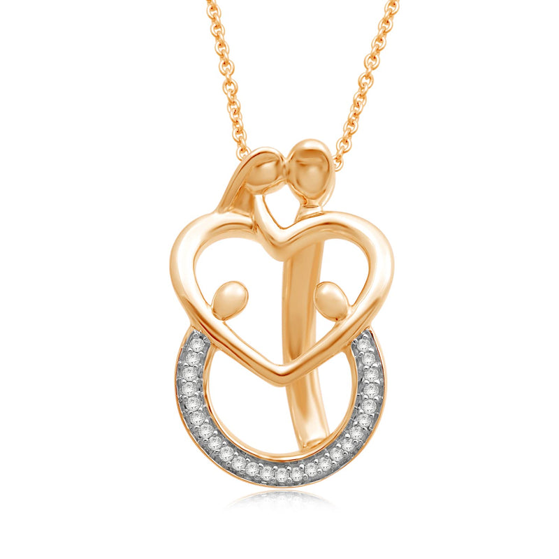 Jewelili 18K Yellow Gold Over Sterling Silver 1/10 CTTW Diamonds Parents with Two Children Pendant Necklace