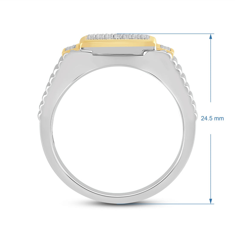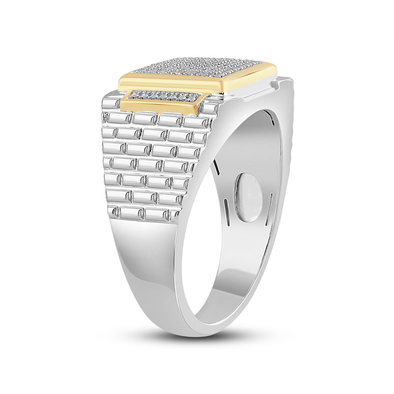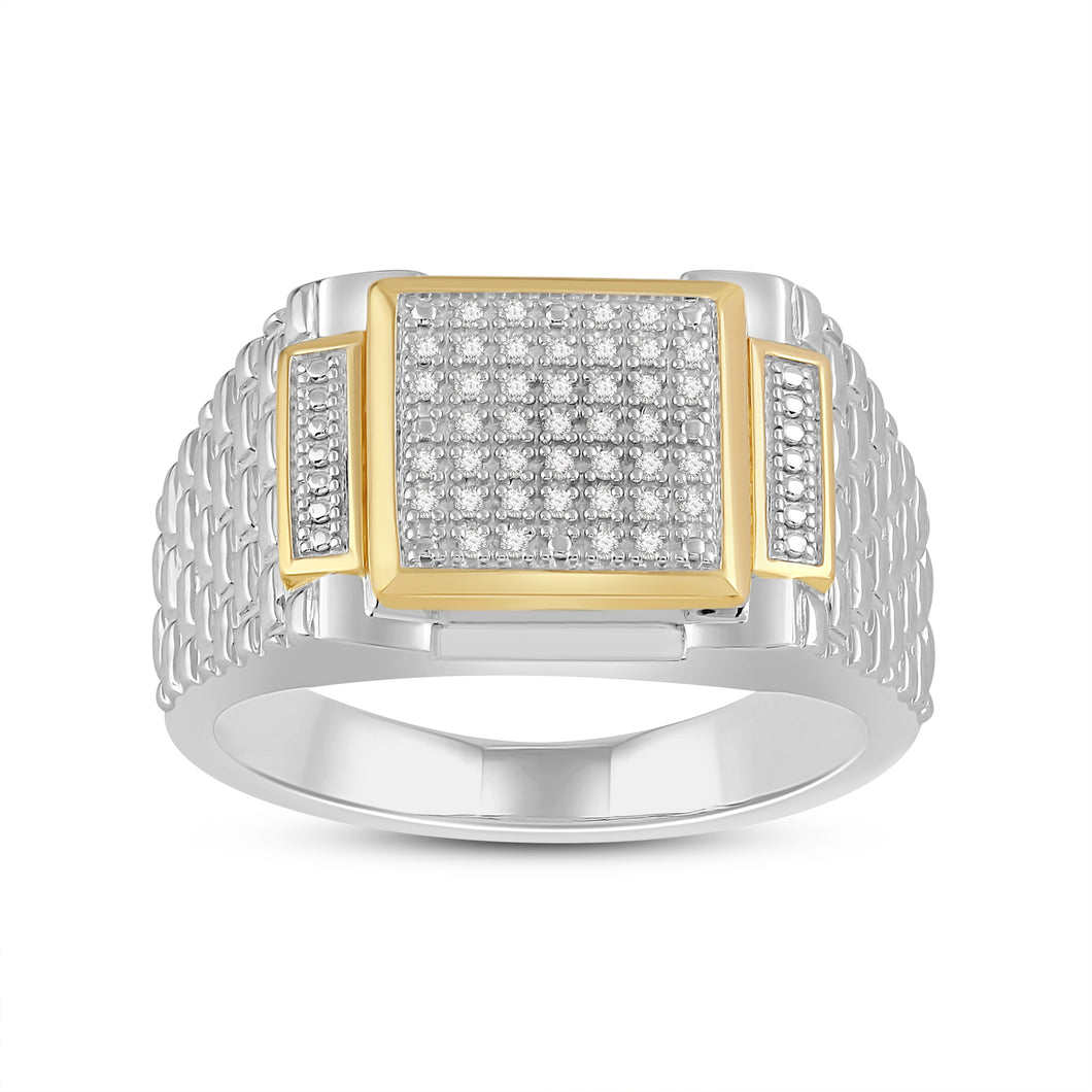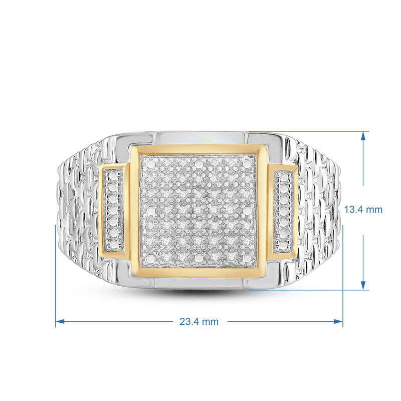 Jewelili 18K Yellow Gold Over Sterling Silver 1/10 CTTW Natural White Round Cut Diamonds Men's Ring