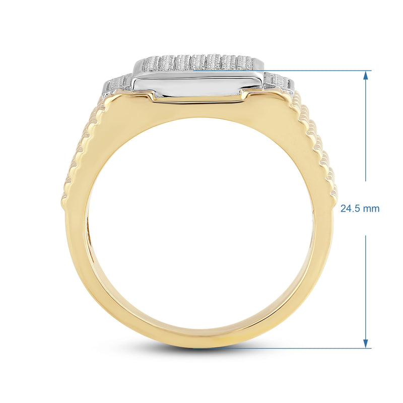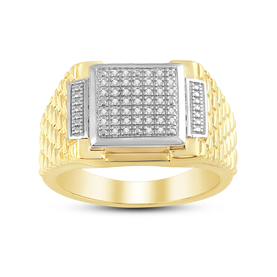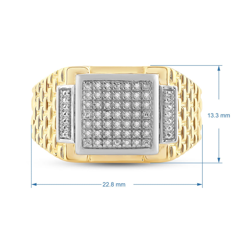 Jewelili 18K Yellow Gold Over Sterling Silver 1/10 CTTW Natural White Round Cut Diamonds Men's Ring