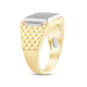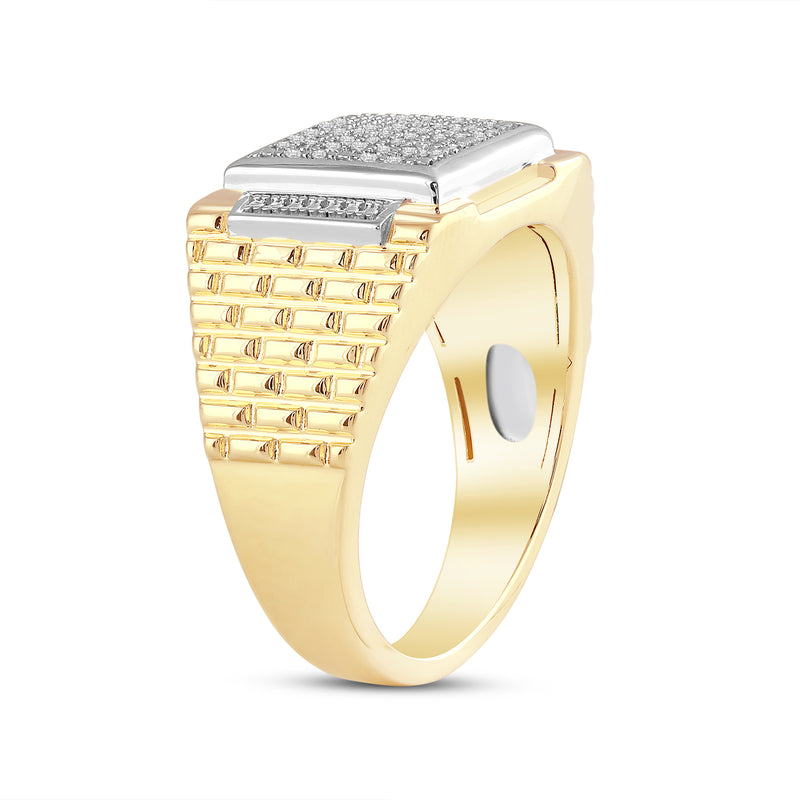 Introducing our unique yellow gold plated silver diamond square texture men's ring - a perfect blend of classic and contemporary style. The intricate square texture design, combined with the brilliance of a diamond, makes this ring a true work of art that will add a touch of sophistication to any outfit. Crafted from high-quality silver, this ring is plated in yellow gold, creating a stunning contrast that will catch everyone's attention.