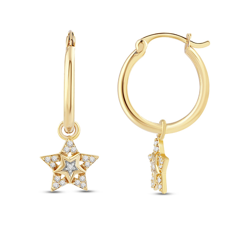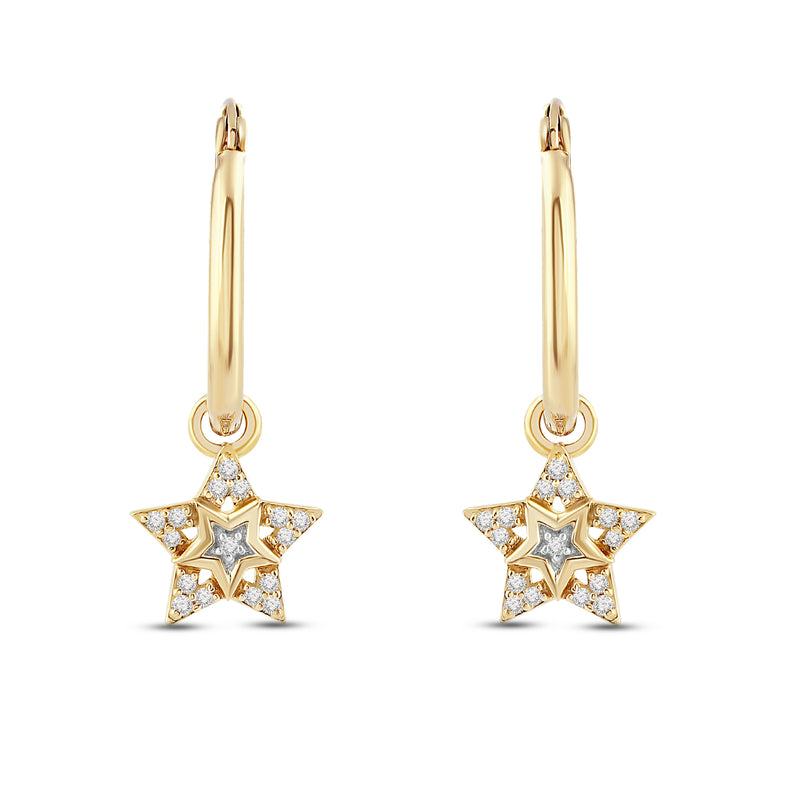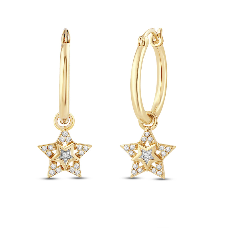 From the Demi Fine collection. These hoop earrings feature a dazzling star-shaped charm at the bottom and a classic huggie design.