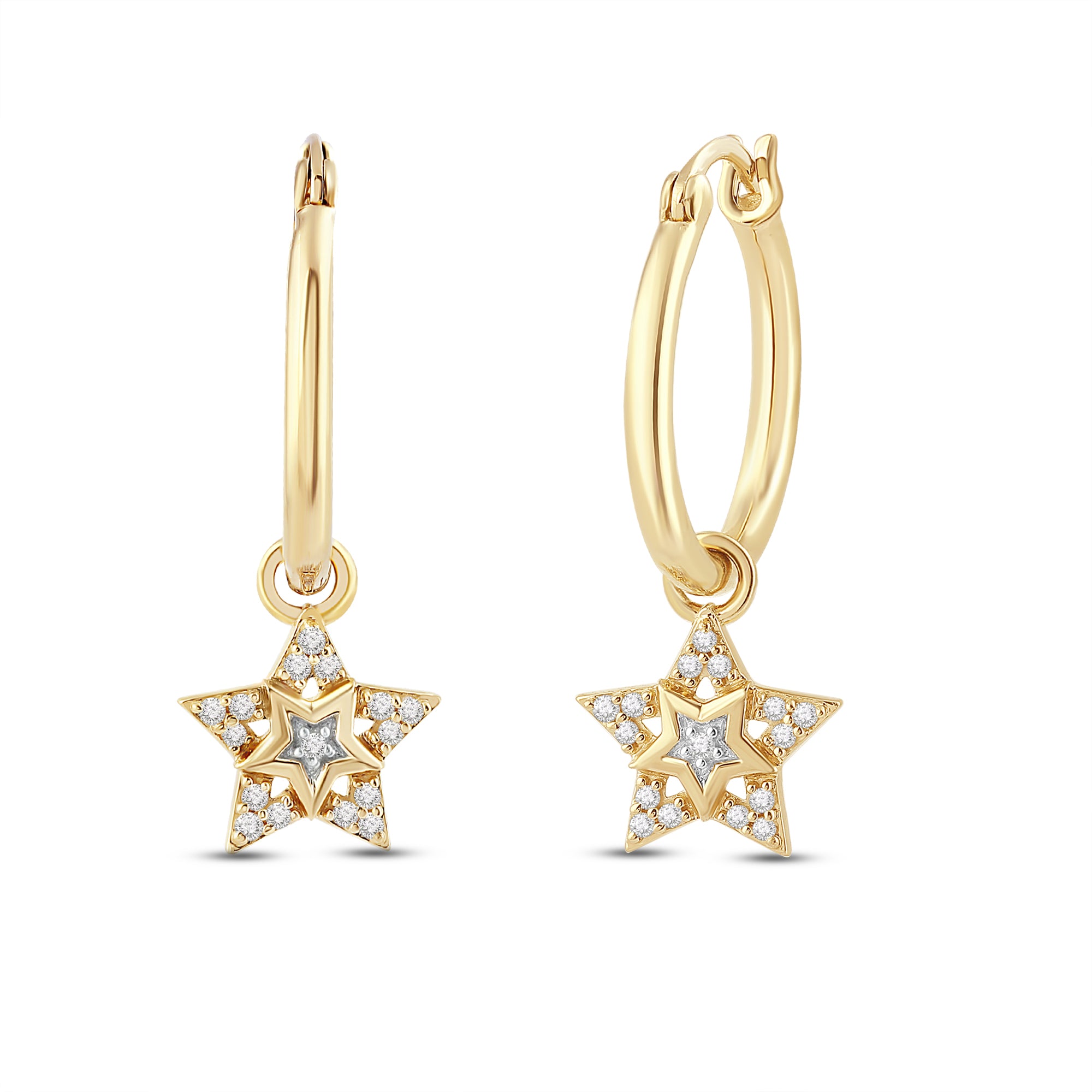 Jewelili 18K Yellow Gold Over Sterling Silver 1/10 CTTW White Diamonds Star Huggie Earrings