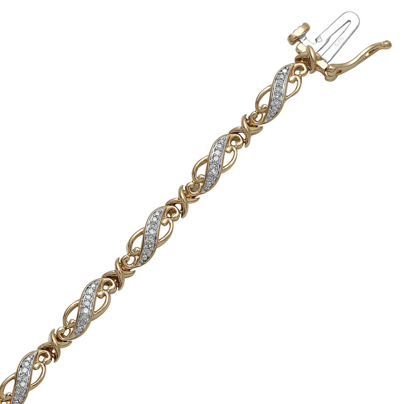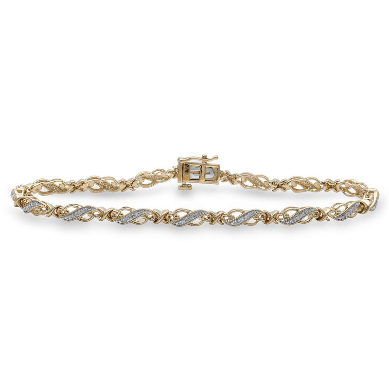 Details: 18K Yellow Gold Over Sterling Silver 1/4 Cttw Round Natural White Diamonds Bracelet, 8"