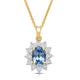 Jewelili 18K Yellow Gold over Sterling Silver 7x5 MM Oval Genuine Swiss Blue Topaz and 1/20 Cttw Natural White Round Diamond Pendant Necklace
