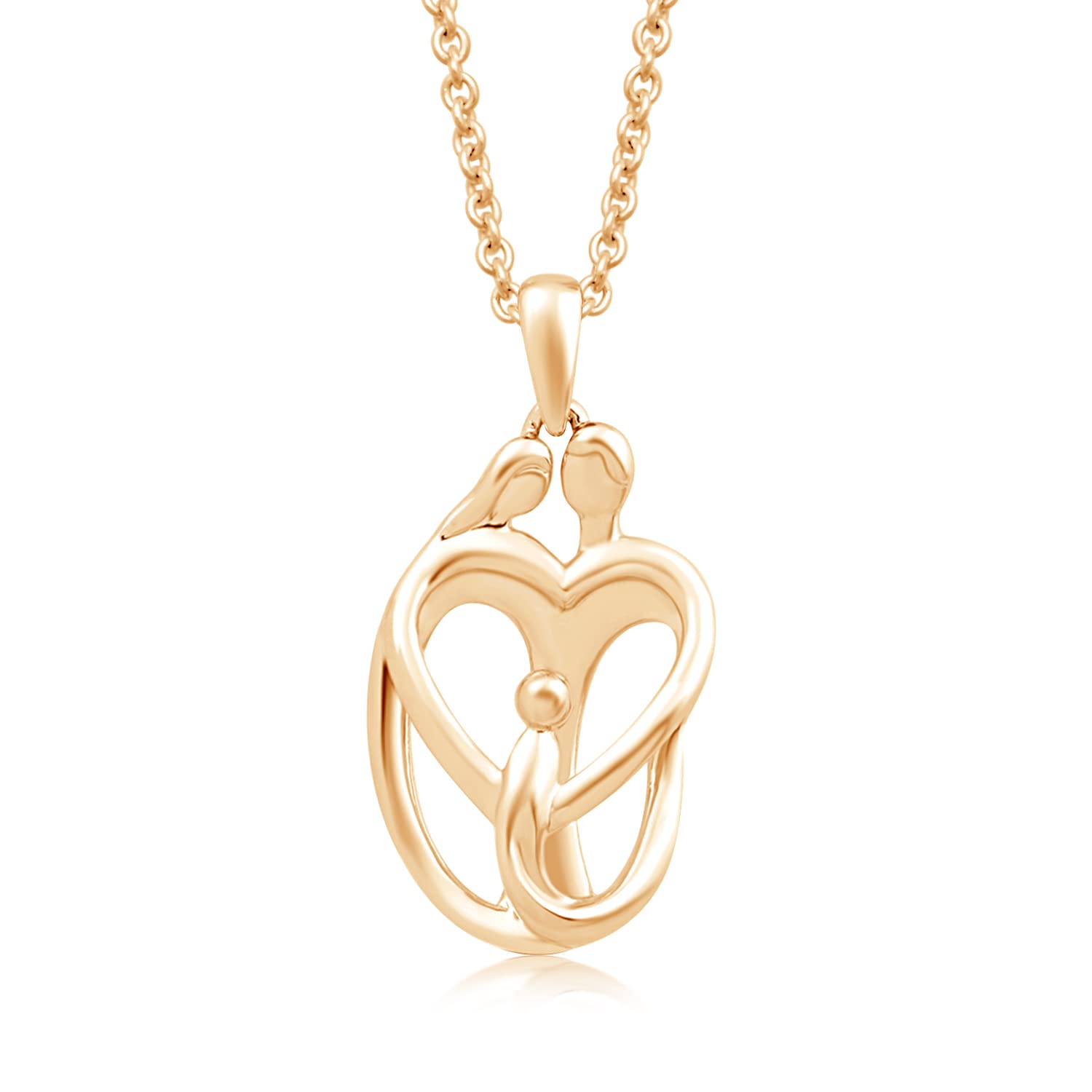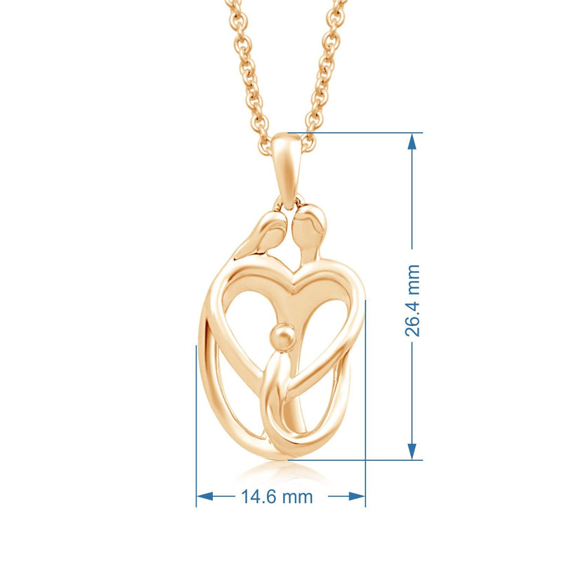 Jewelili 18K Yellow Gold Over Sterling Silver With Parents and One Child Family Heart Pendant Necklace
