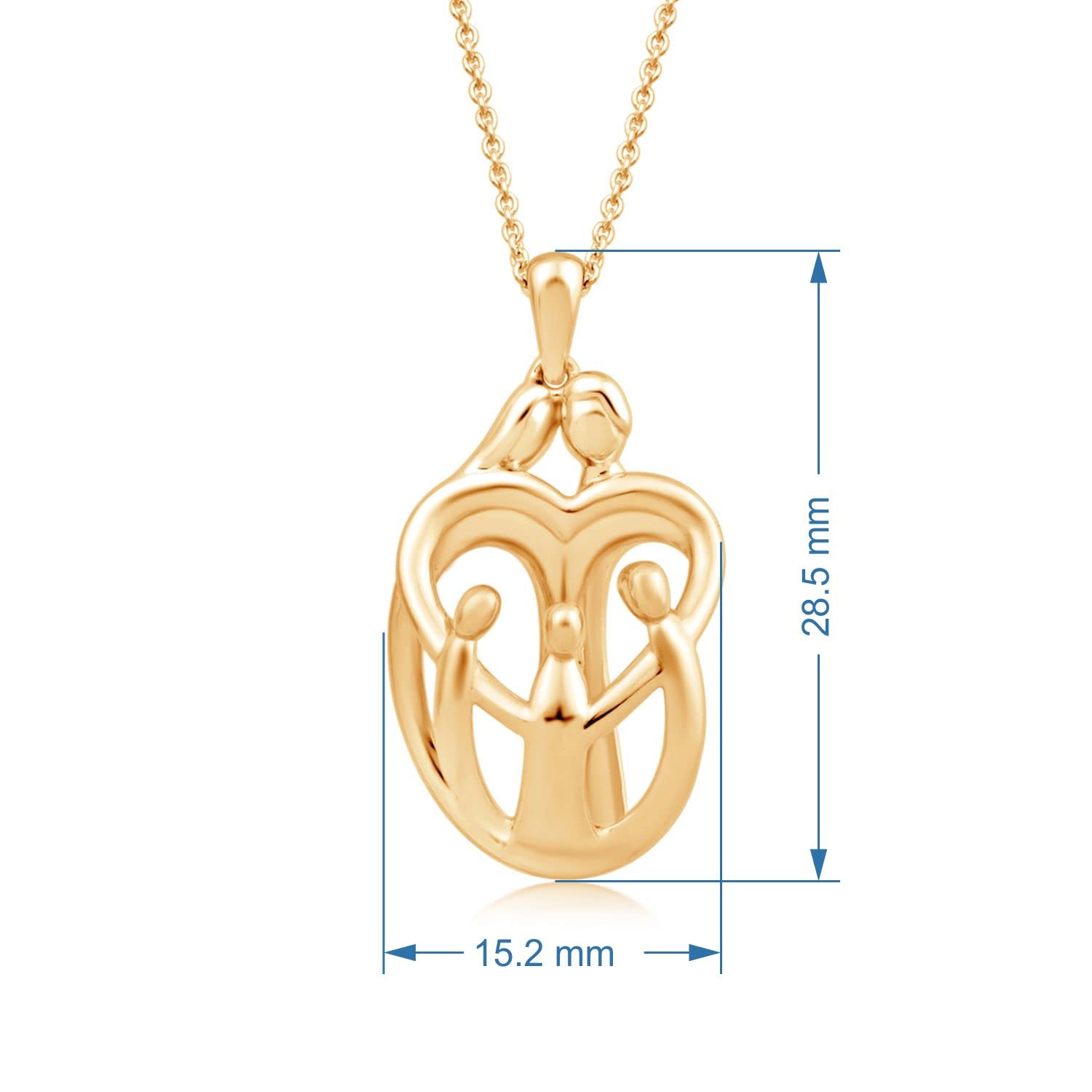 Jewelili 18K Yellow Gold Over Sterling Silver With Parents and Three Children Family Heart Pendant Necklace