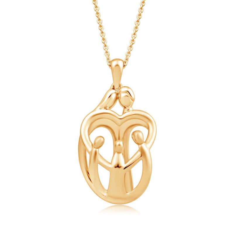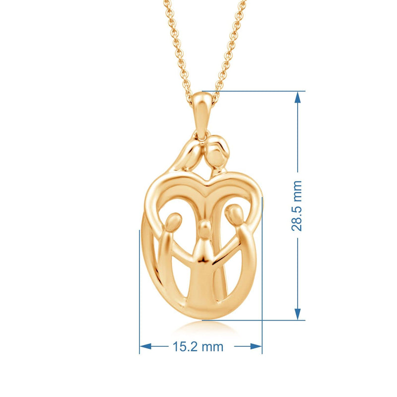 • Load image into Gallery viewer, Jewelili Parents and Three Children Family Heart Pendant Necklace in 18K Yellow Gold over Sterling Silver View 1