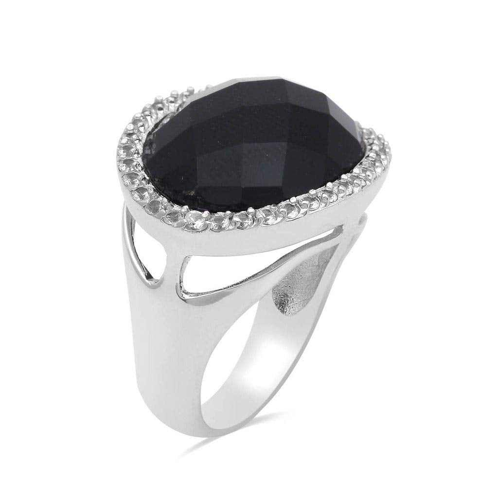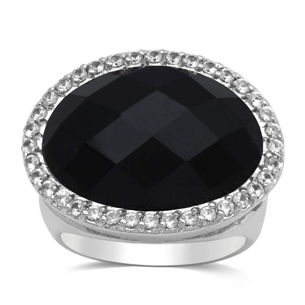 • 22 X 15 mm Oval Black Onyx Cabochon surrounded by Created White Sapphire