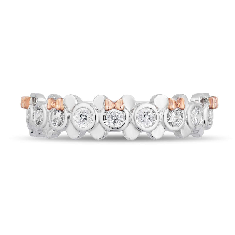 Jewelili Disney Mickey & Friends 10K White and Rose Gold With 1/3 CTTW Diamonds Mickey Minnie Ring