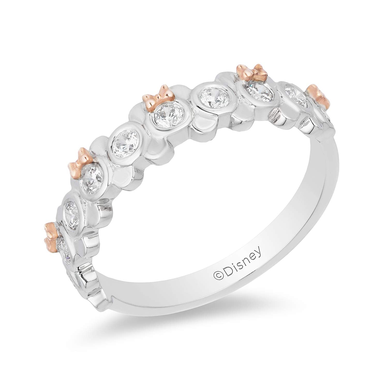 Details: Disney Mickey & Friends 10K White and Rose Gold With 1/3 Cttw Diamonds Mickey Minnie Ring