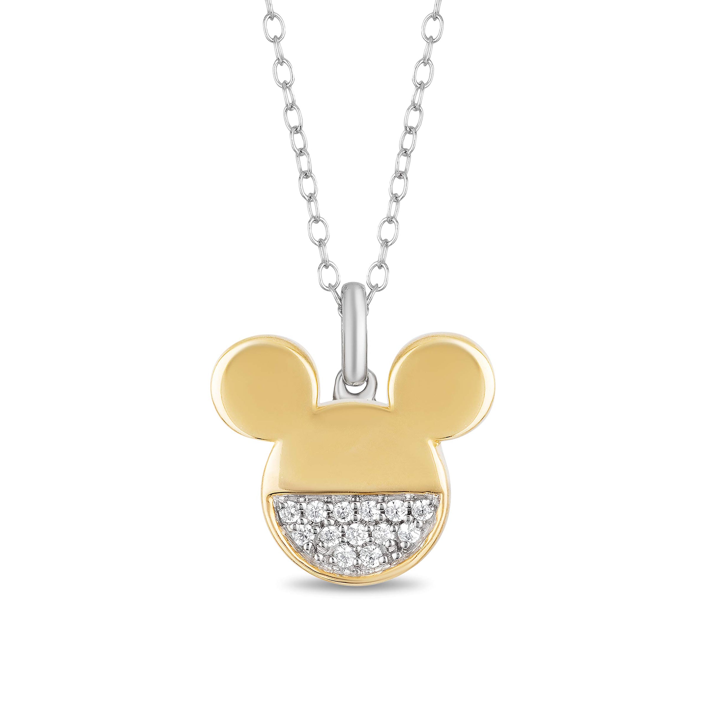 Jewelili Disney Mickey & Friends 10K White & Yellow Gold 1/10 CTTW Diamonds Mickey -Minnie Collection Pendant Necklace