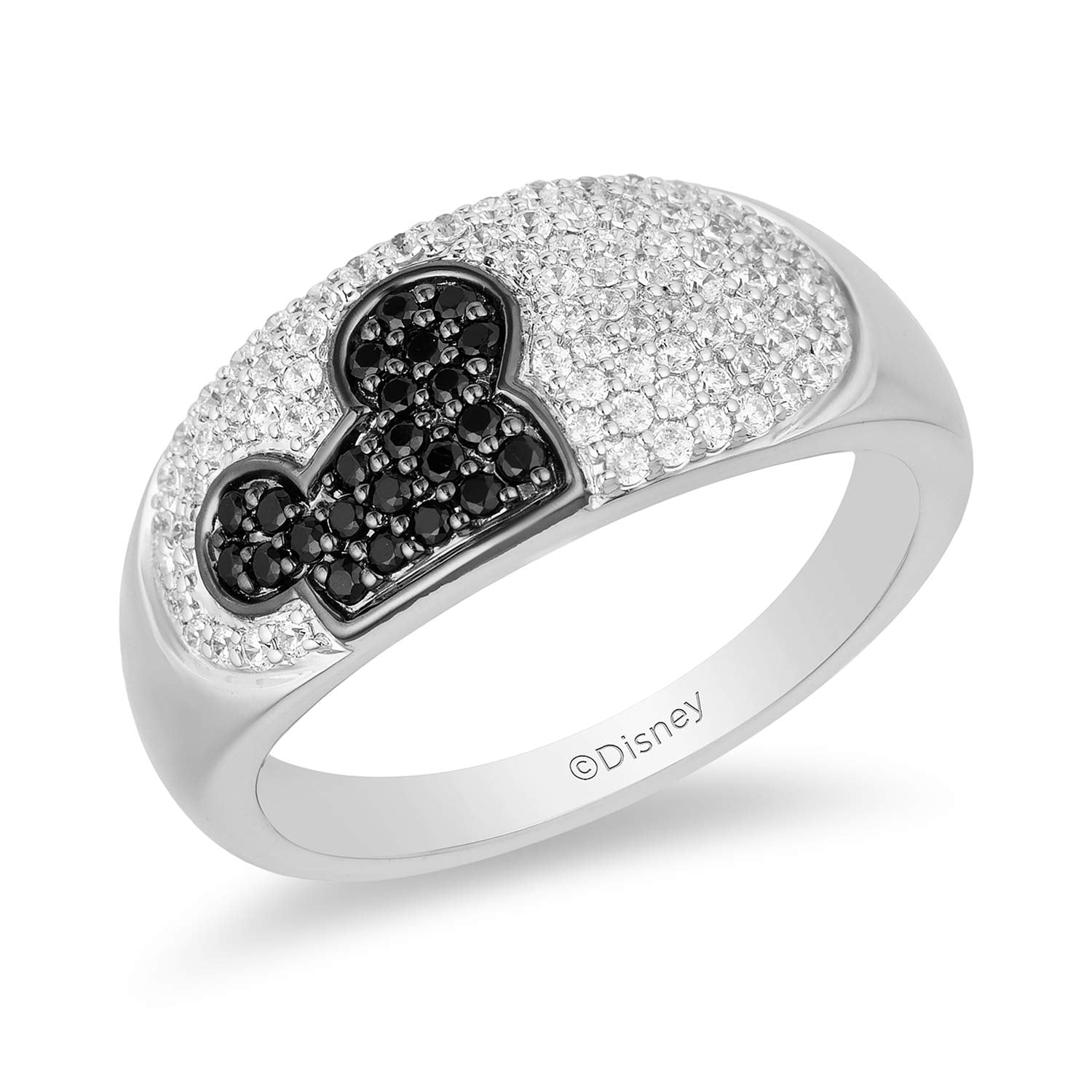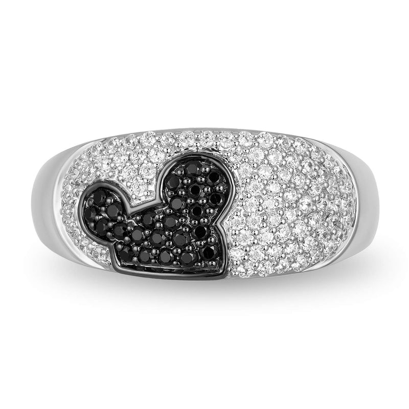 Jewelili Disney Mickey & Friends Sterling Silver With 1/2 CTTW Diamonds Mickey Ring