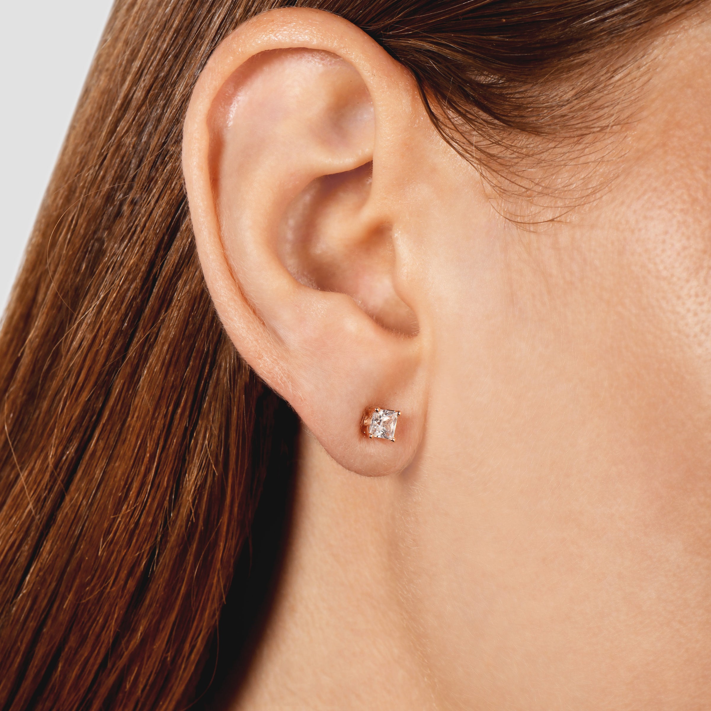 Enchanted Disney Fine Jewelry 14K Rose Gold 1.00Cttw Princess Cut Diamond Majestic Princess Solitaire Earrings