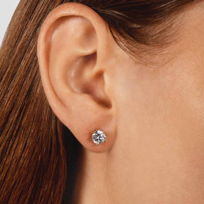 Epitomizing refined simplicity, these Enchanted Disney Fine Jewelry 14K Yellow Gold Majestic Princess 1 1/2 cttw Diamond Solitaire Earrings is made for the timeless woman - she who exudes grace and beauty even in her simplest ways. These precious earrings can dress up any look and add just a hint of glamour to any outfit. Expect these diamond stud earrings to wow a very elegant lady.