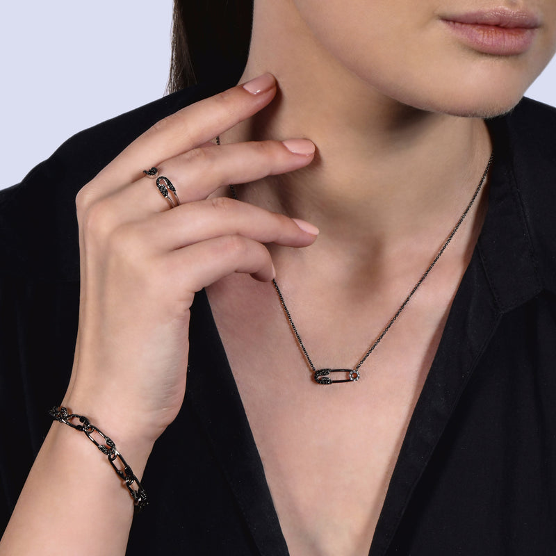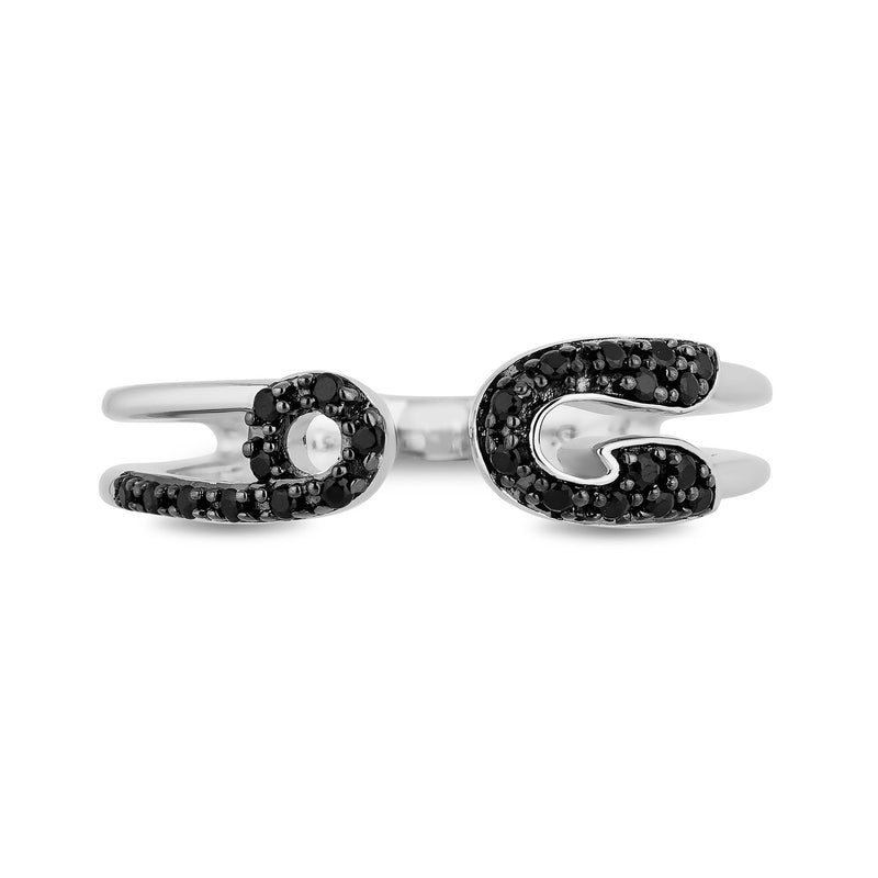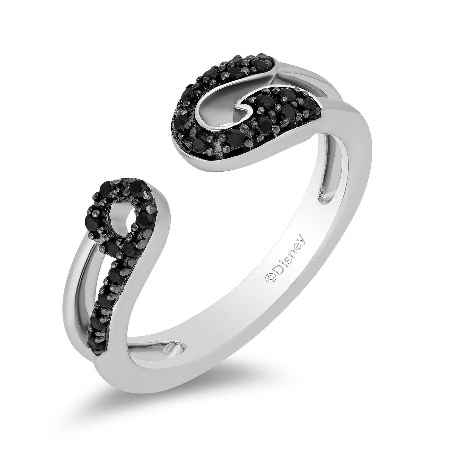 Never fit in! Inspired 70s Punk era London, this sterling silver and black diamond safety pin ring takes its cue from Cruella's edgy and elevated style.