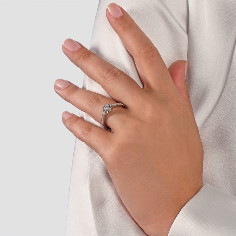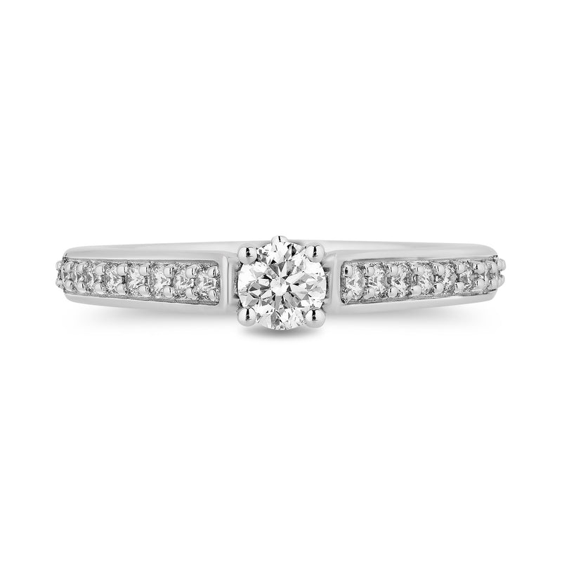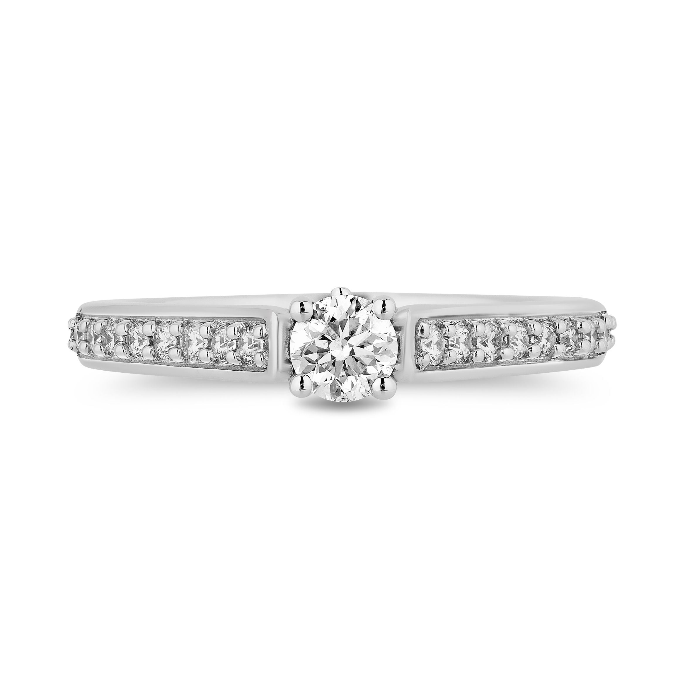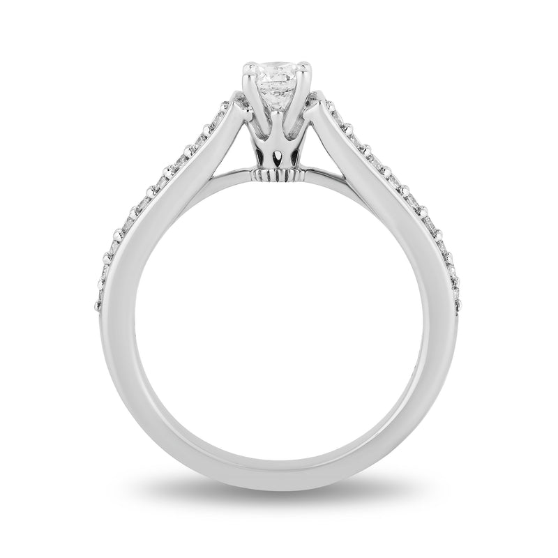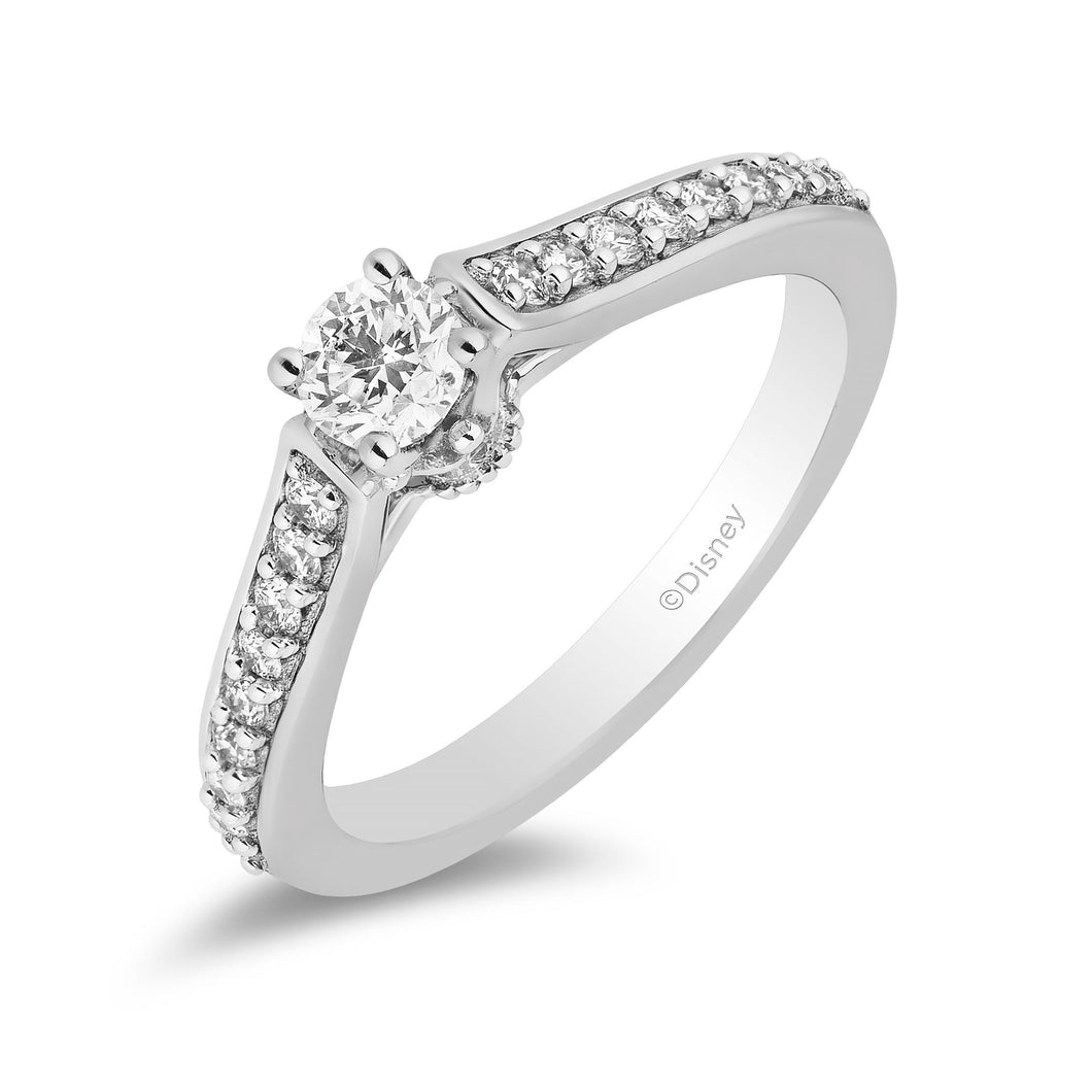 The ring to give to a very special lady who won't place her fate in others' hands. Designed for the empowered princess, this Enchanted Disney Fine Jewelry Majestic Princess Diamond Engagement Ring shimmers with 1/2 cttw of diamonds. Its 14K white gold band showcases simplicity that will impress. Celebrate her determination, commitment, and admirable character with the powerful sparkle of this diamond ring.