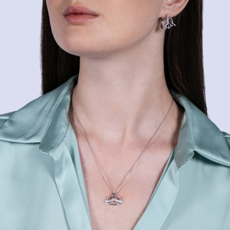 • Load image into Gallery viewer, Enchanted Disney Fine Jewelry Sterling Silver 1/5Cttw Majestic Princess Tiara Earrings