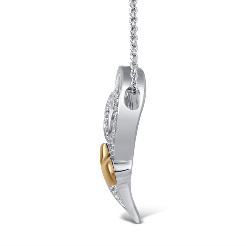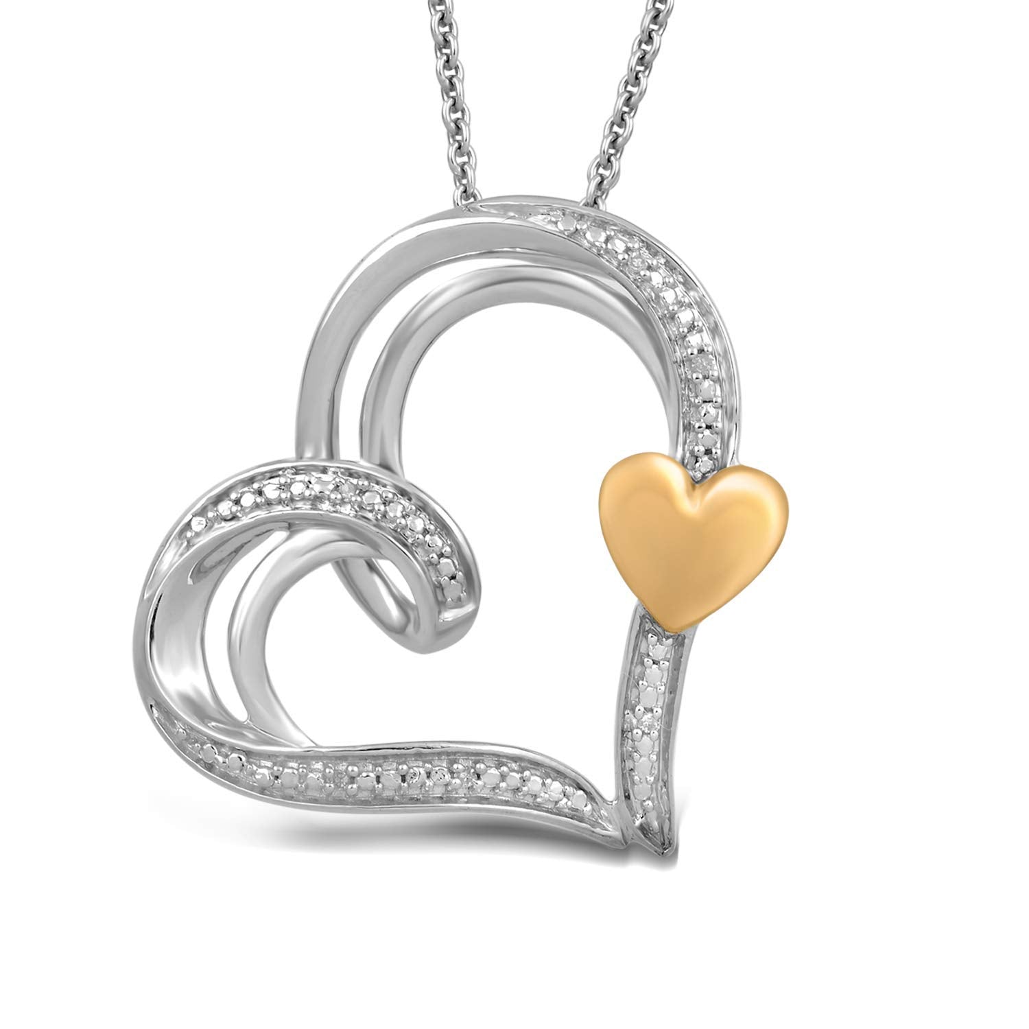 Jewelili Sterling Silver and 10K Yellow Gold With Natural White Diamonds Heart Shape Pendant Necklace