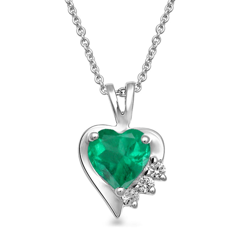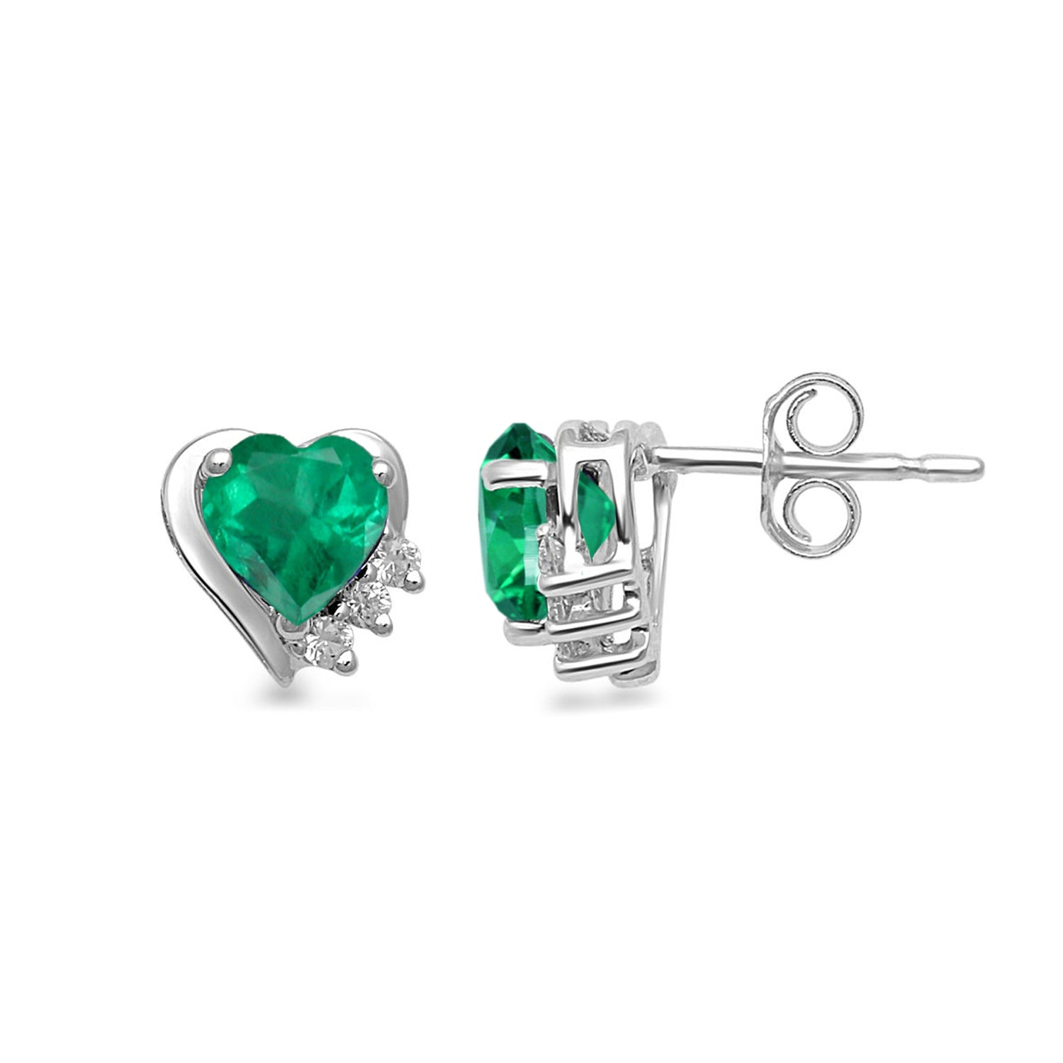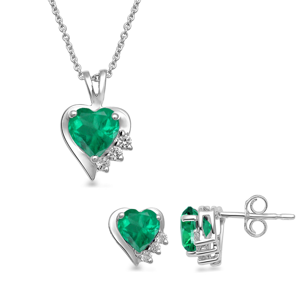 • Pendant and Stud Earrings Set in Sterling Silver 6 mm Heart Shape Simulated Emerald and 1.75 mm White Round Created Sapphire
