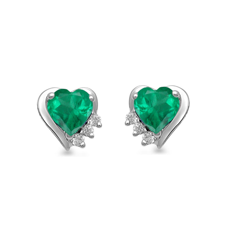 Jewelili Sterling Silver with Heart Simulated Emerald and Round Created White Sapphire Pendant and Stud Earrings Set